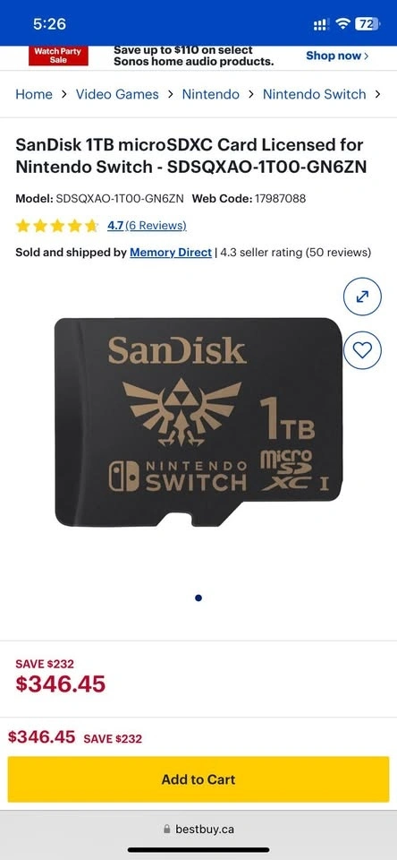Buy & SellSanDisk 1TB micro SDXC Card - Nintendo SwitchSanDisk 1TB micro SDXC Card - Nintendo Switch$150100MB/s read speed; up to 90MB/s write speed. Feel free to message if you have any questions!WHERE TO MEETCheck LocationView MapSELLERMikeLong Branch181 review1 chats·4 favorites·65 viewsSEND CHAT TO SELLERHi Mike! I’m interested in your listing.Hi Mike! I’m interested in your listing.Get the Karrot app to chatSign In to chat