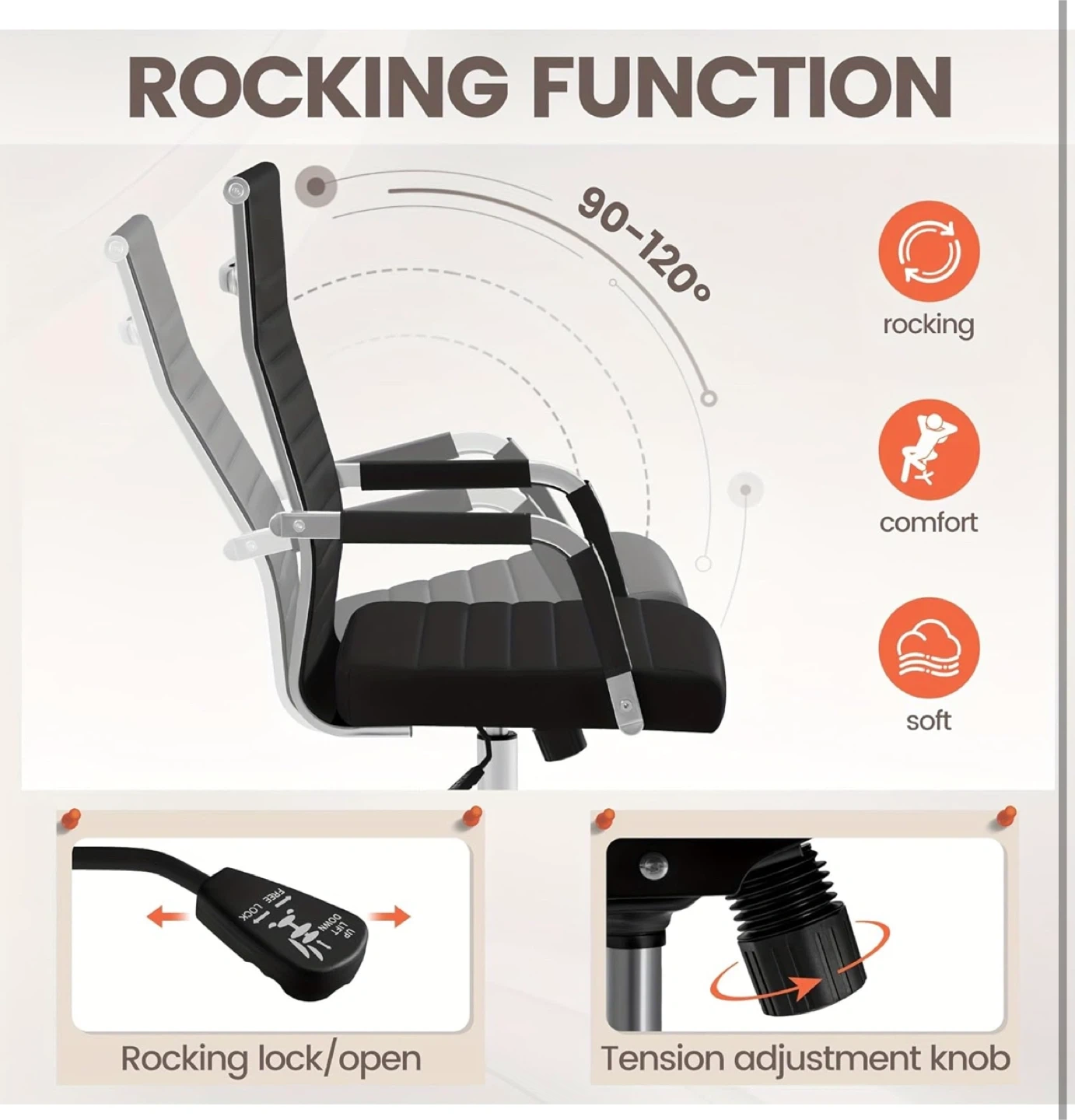 This office chair features a high back design for added support and comfort. It's upholstered in black faux leather with sleek chrome accents and a smooth-rolling wheel base. The seat height is adjustable to suit your needs