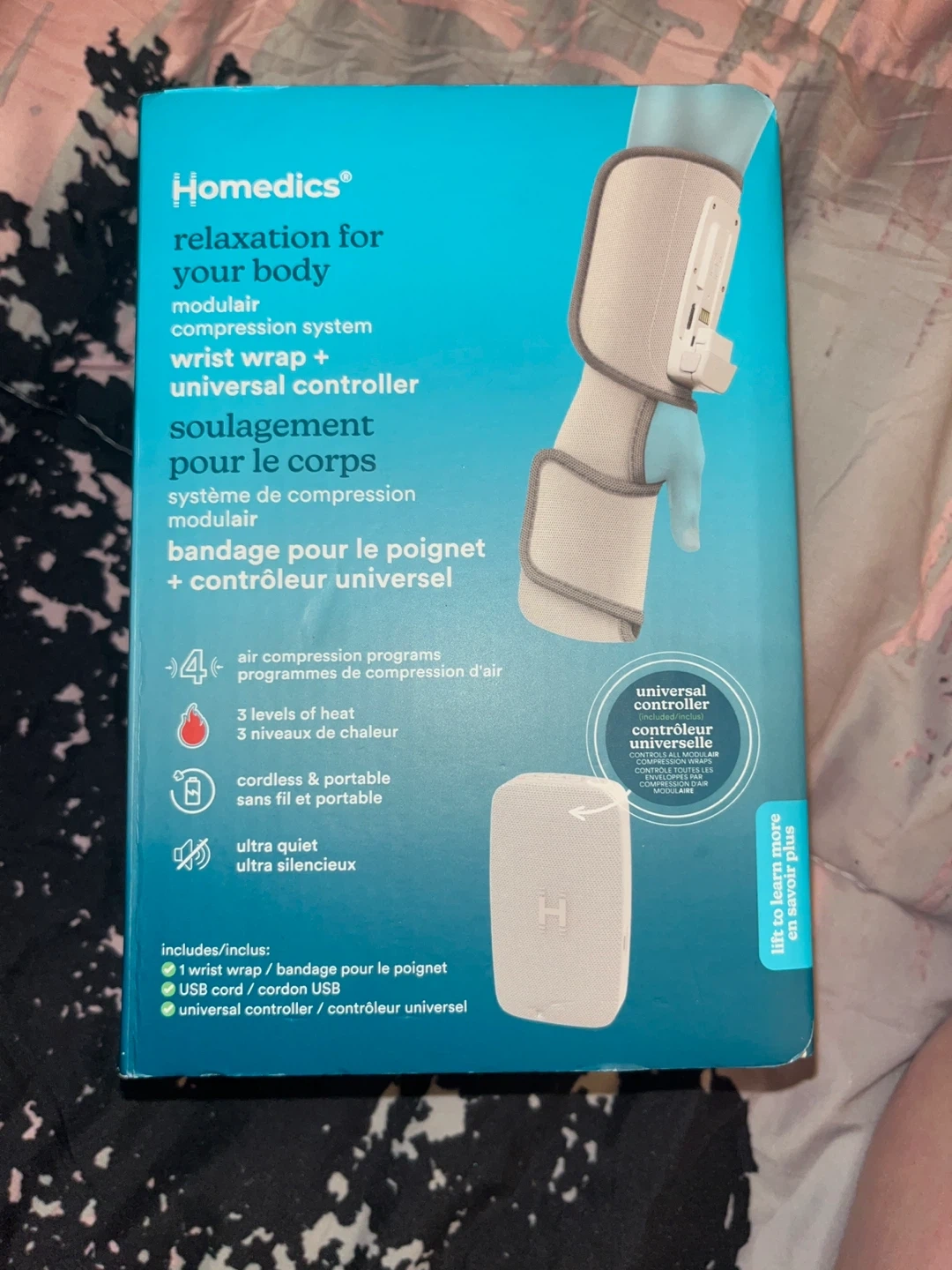 This HoMedics Modulair compression system includes a wrist wrap and a universal controller. It offers 4 air compression programs with variable intensity and heat. The wrap is made from soft, wire-free mesh fabric and is cordless and portable. This is great for targeted relaxation and muscle relief!