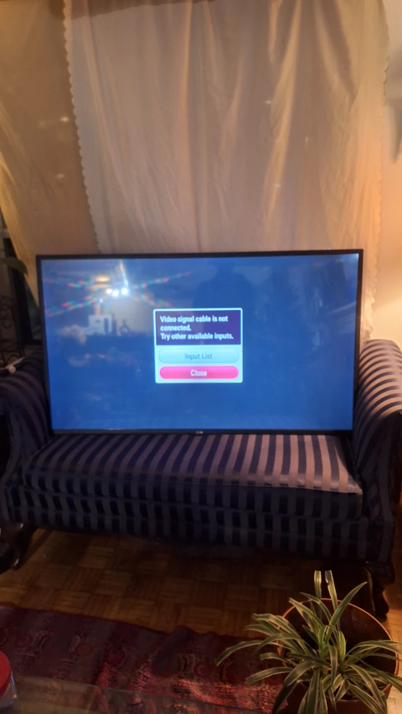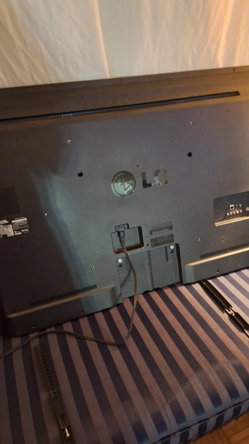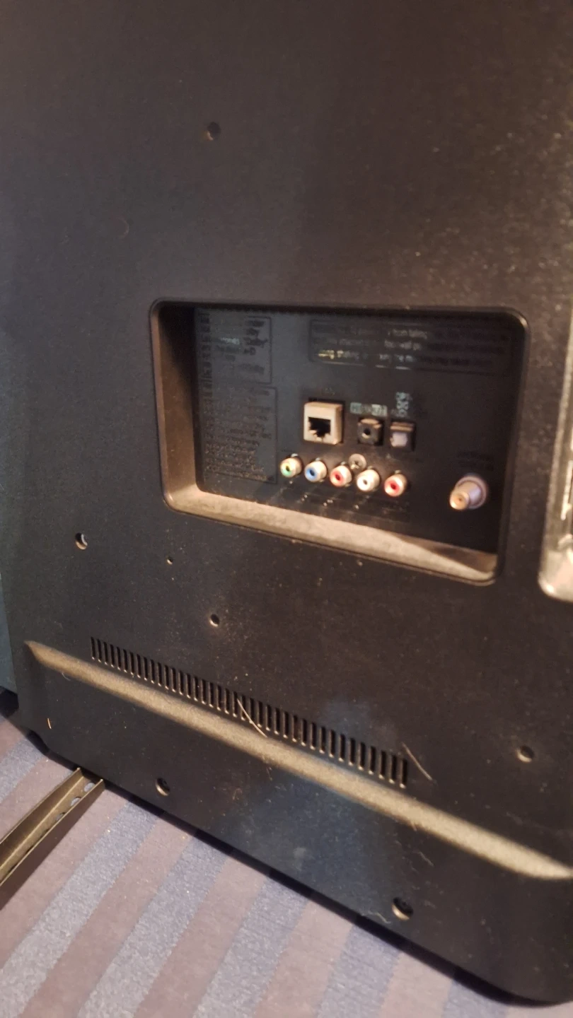 LG 55 inch 55LN5750 model LED TV. Manufactured November 2013. It has various inputs including HDMI, USB, and component connections.