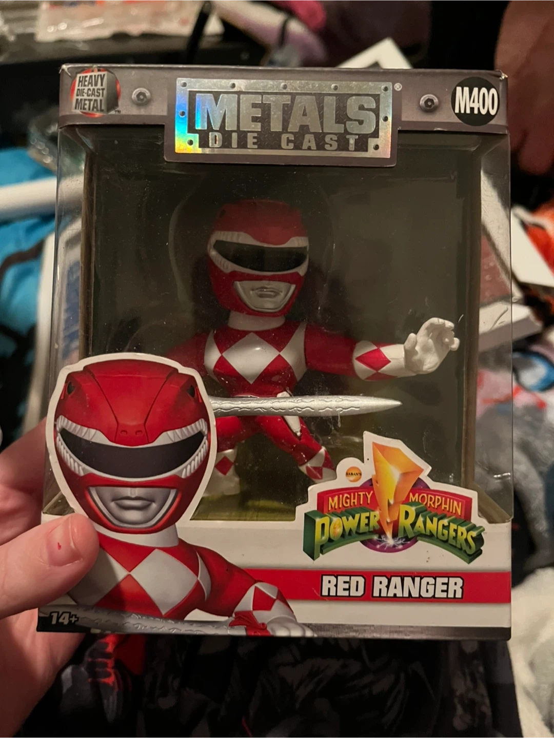 This is a Mighty Morphin Power Rangers Red Ranger Metals Die Cast figure. It's part of the M400 series and is a collectible item. This figure is great for any Power Rangers fan!