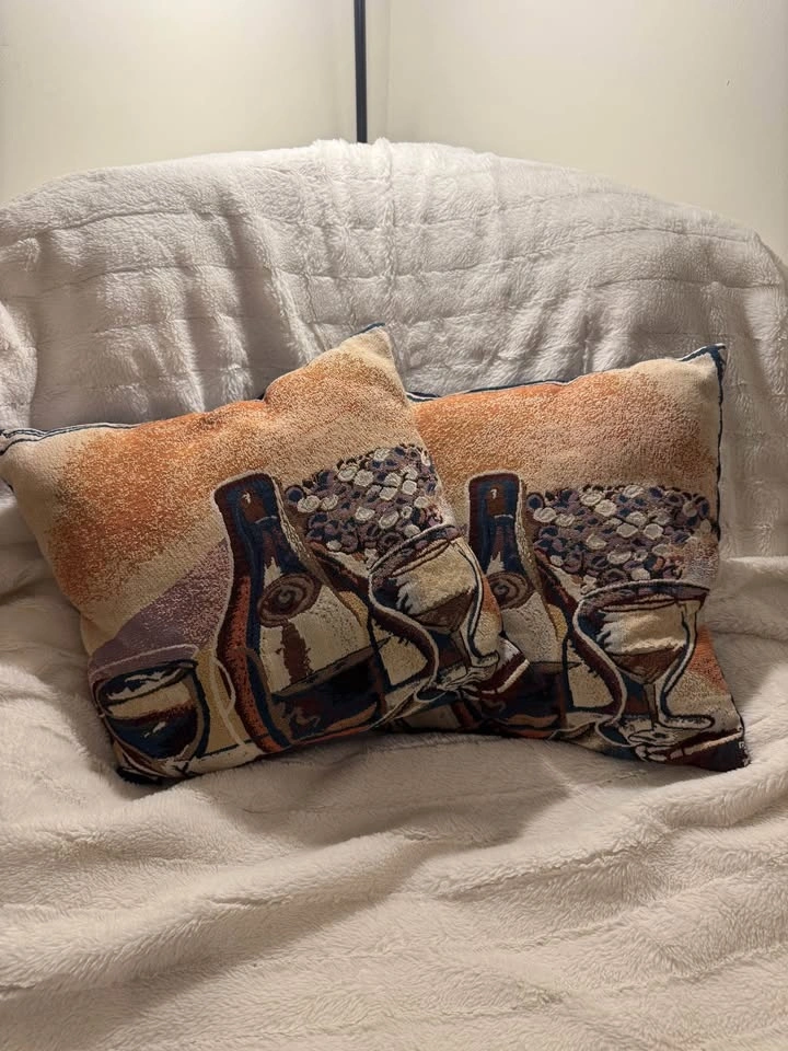 Beautiful woven throw pillows with a still-life / art print design. Neutral tones with warm oranges, creams, and blues — perfect for a cozy couch, reading chair, or layered bed styling. Set of 2 matching pillows. Woven fabric (tapestry-style). Clean, no stains or damage. From a smoke-free home. Selling because I’m downsizing. Price: $20 obo. Pickup in Abbotsford, Mount Lehman Area.