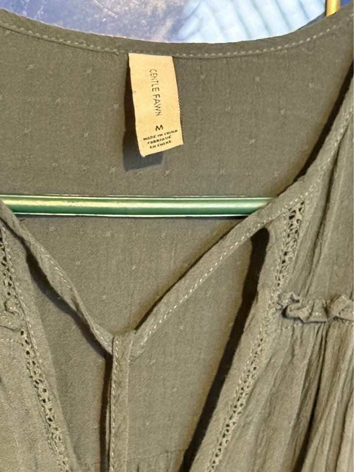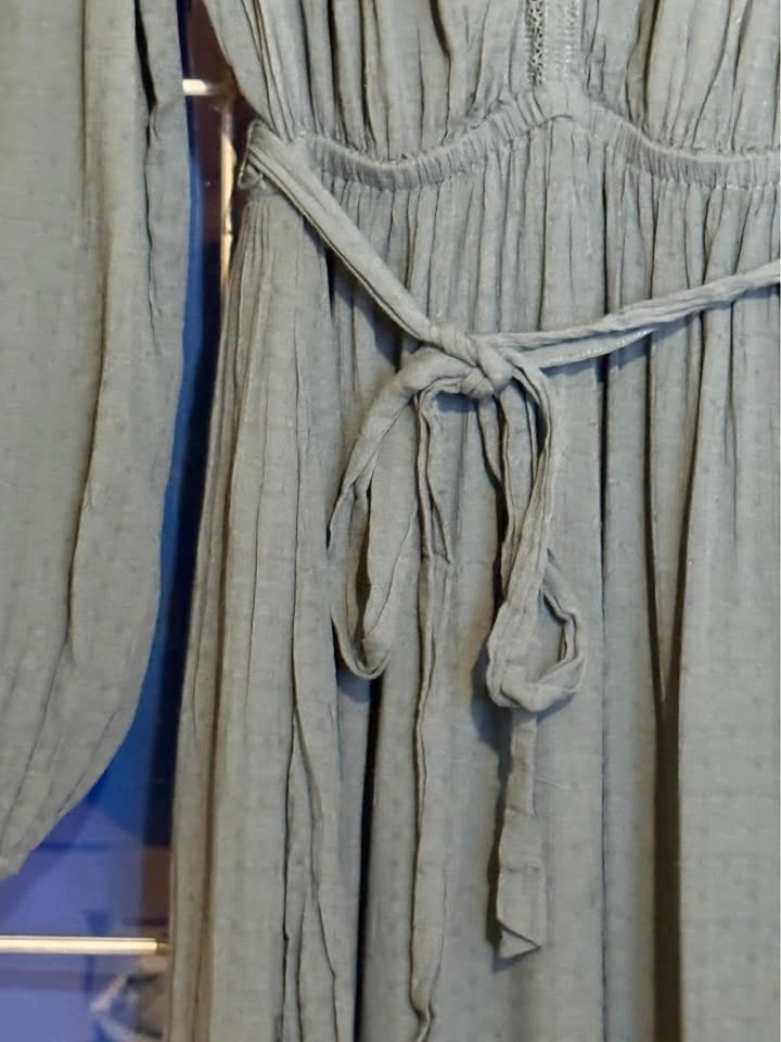 Beautiful Gentle Fawn midi dress in a soft blue-green tone. Flowy, flattering silhouette with long sleeves, gathered waist, and tie detail. Lightweight and perfect for spring, summer evenings, or transitional fall layering. Originally $150. Size Medium. Excellent condition — no stains or damage. Easy to dress up or down (sandals, boots, or sneakers). Smoke-free home. Pickup Abbotsford, Mount Lehman Area.