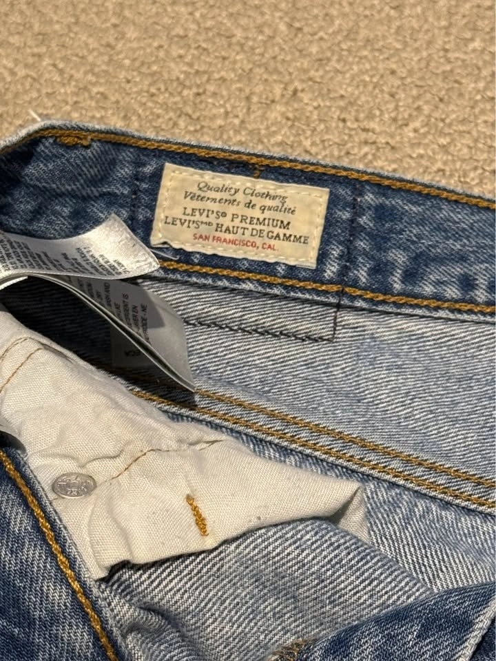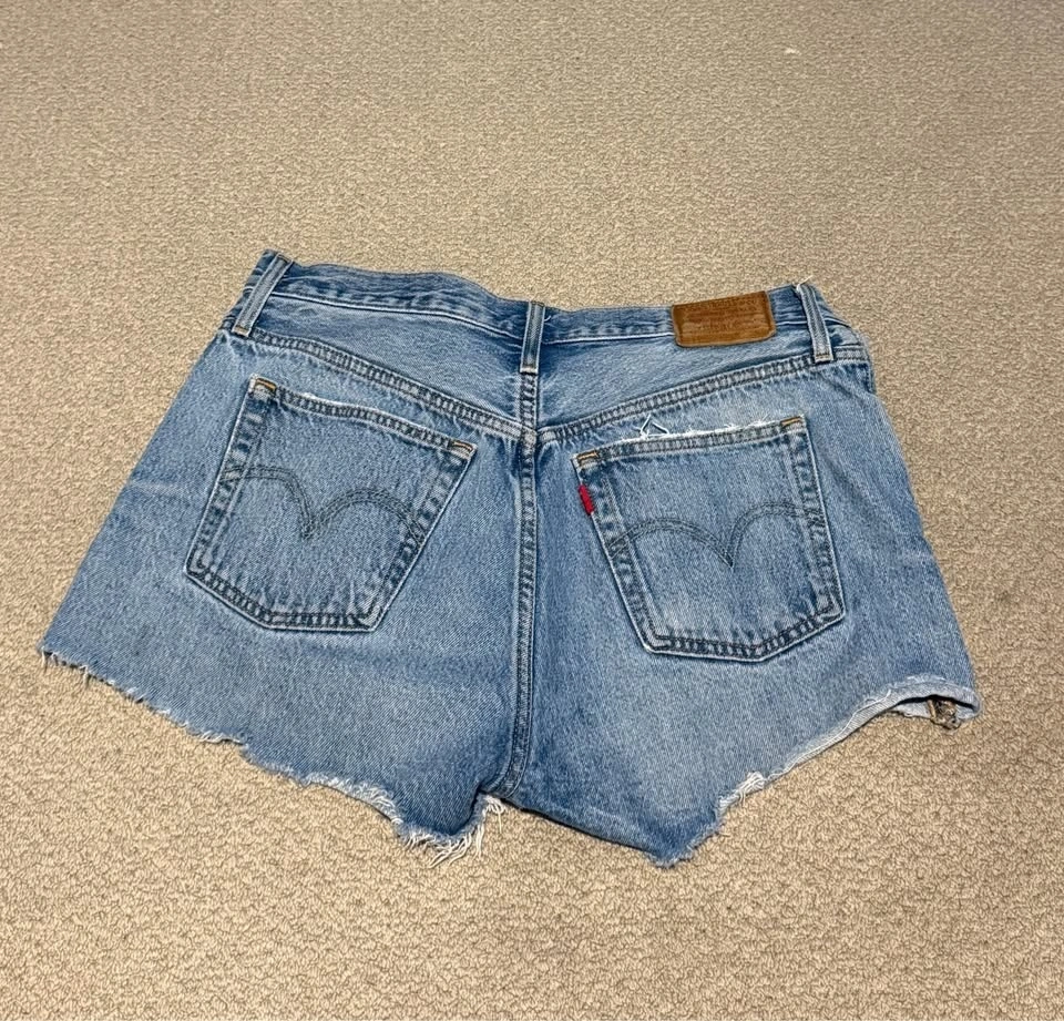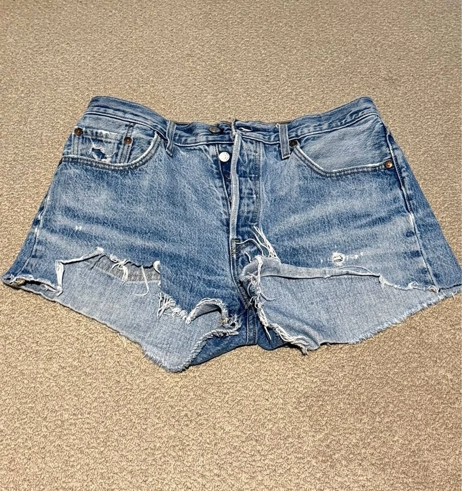 Levi’s 501 premium denim cutoff shorts with intentional distressing. High-waisted fit with classic button fly. These are authentic Levi’s 501s (distressing is part of the design). Brand: Levi’s 501 Premium. Waist: W29. Fit: High-waisted. Style: Cutoff / distressed. Colour: Blue. Condition: Good. Smoke-free home. Pickup Abbotsford, Mount Lehman Area. Priced to sell quickly. $20.