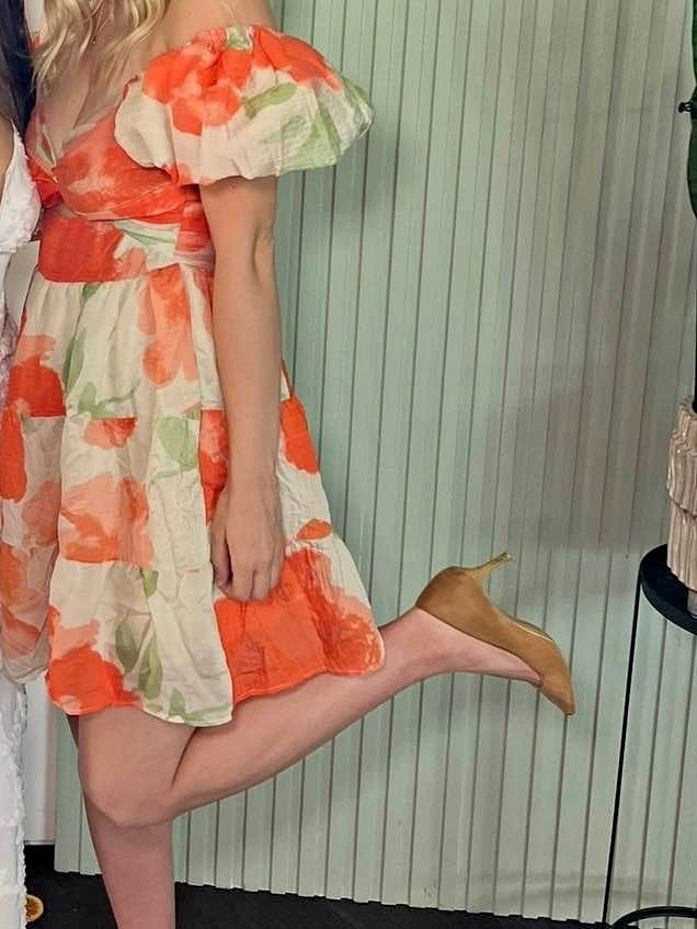 Beautiful coral/orange floral mini dress from Australian brand Billy J. Features puff sleeves, fitted waist, and flowy skirt — super flattering and perfect for summer events. Worn once to a bridal shower and in excellent condition. Great for weddings, baby showers, garden parties, or vacation dinners. Tagged AUS 12 (fits approx US 8–10). Hard to find in Canada. Pickup in Abbotsford (Mount Lehman area). See my other listings for more women’s clothing. Open to bundle pricing.