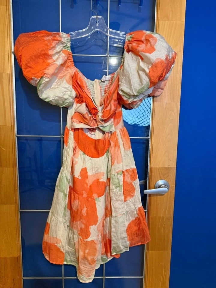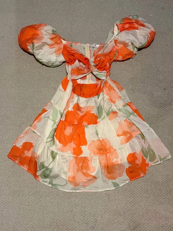 Beautiful coral/orange floral mini dress from Australian brand Billy J. Features puff sleeves, fitted waist, and flowy skirt — super flattering and perfect for summer events. Worn once to a bridal shower and in excellent condition. Great for weddings, baby showers, garden parties, or vacation dinners. Tagged AUS 12 (fits approx US 8–10). Hard to find in Canada. Pickup in Abbotsford (Mount Lehman area). See my other listings for more women’s clothing. Open to bundle pricing.