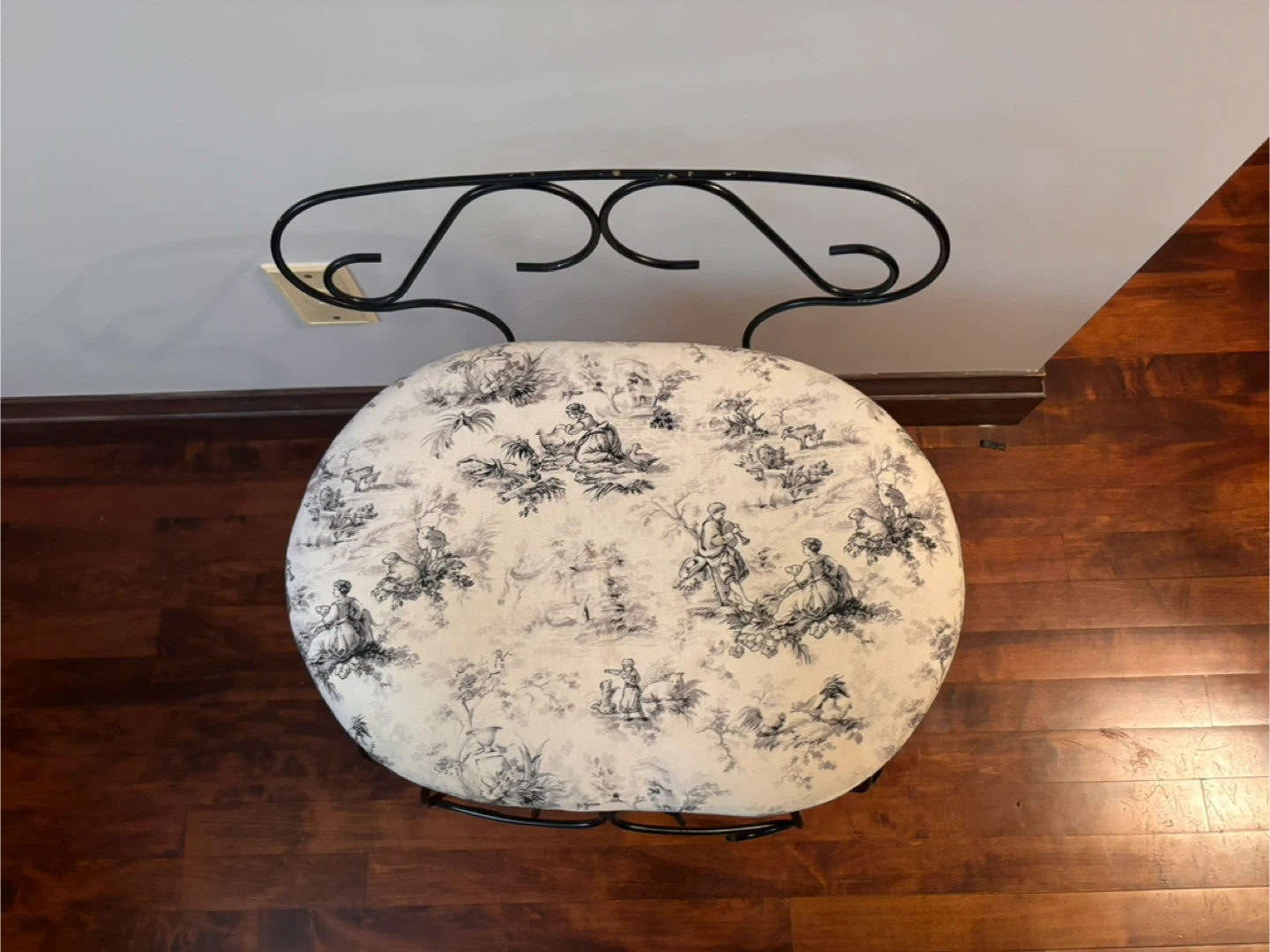 Wrought-Iron Accent / Vanity Chair with Toile Upholstery