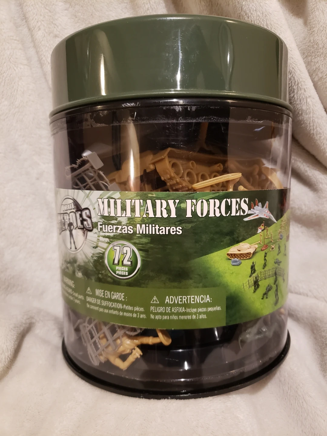This Kruize Heroes playset features military forces with 72 pieces. It includes tanks, soldiers, and accessories for imaginative play. Recommended for ages 3 and up.