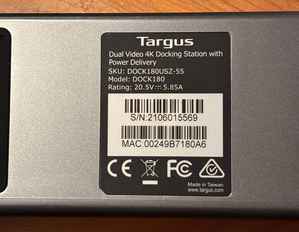 Targus Dual Video 4K Docking Station in excellent working condition. This is the DOCK180 model, great for professional and work-from-home setups. It allows you to connect dual monitors, charge your laptop, and use multiple accessories through a single cable using DisplayLink technology.