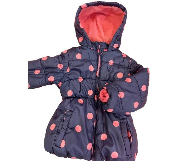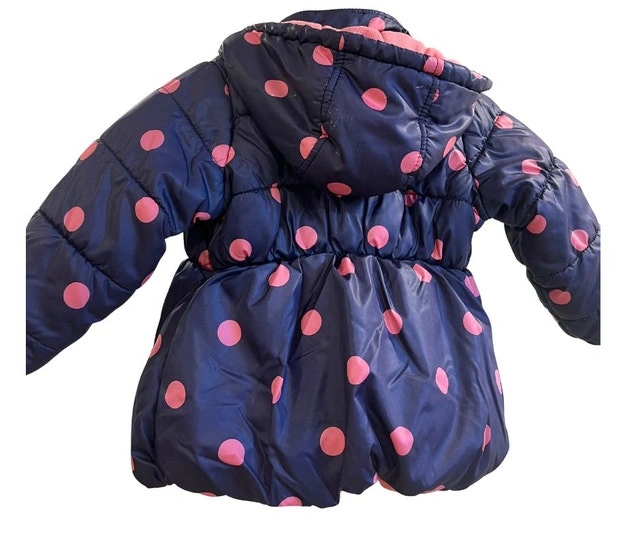 Cozy, beautiful, and thick jacket for size 2T. Features 2 pockets. Warm and ideal for fall or early winter. Color: Navy blue with pink polka dots. Condition: Used - Like new.