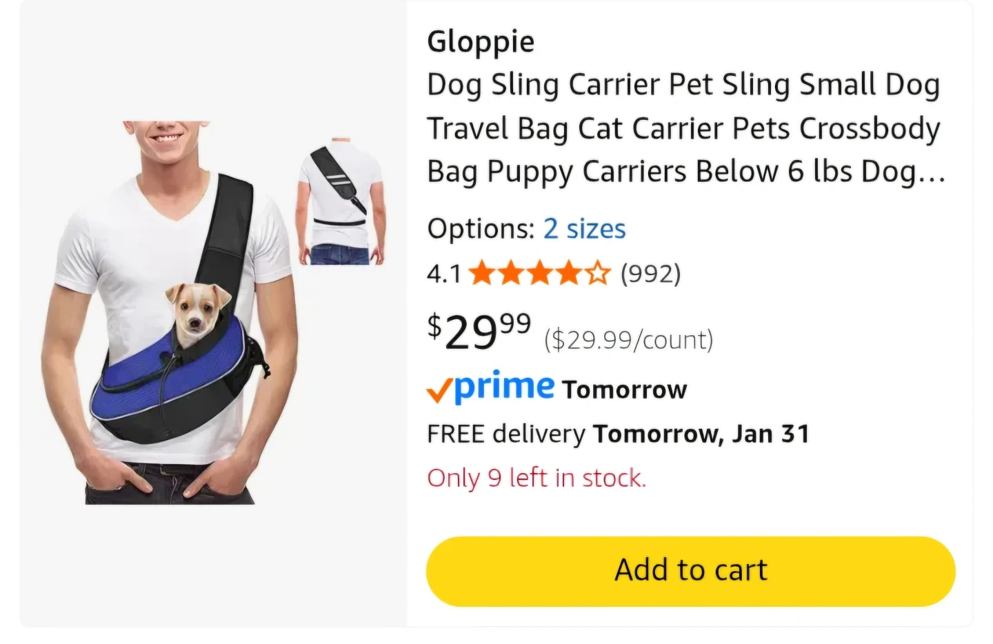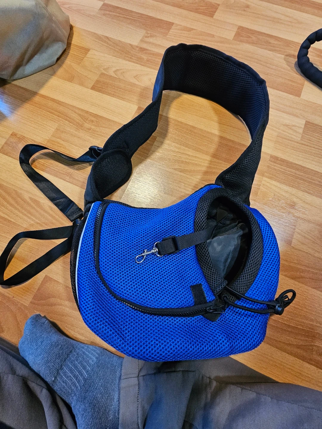 This Gloppie dog sling carrier is perfect for small pets. It's designed for dogs or cats up to 6 lbs. The breathable mesh material keeps your pet comfortable during travel.