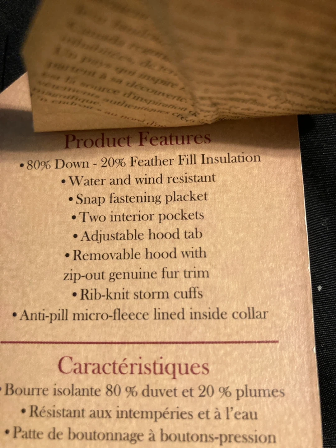 Women's small black parka by Moose Knuckles for Hudson's Bay Company. It's 80% down and 20% feather fill, water and wind resistant. Features a removable hood with genuine fur trim and rib-knit storm cuffs. Brand new with tags. Originally bought for $270.