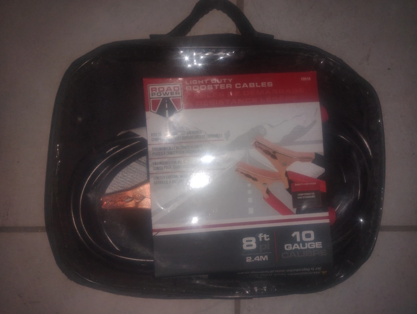 Road Power Light Duty Booster Cables - 8 ft, 10 Gauge