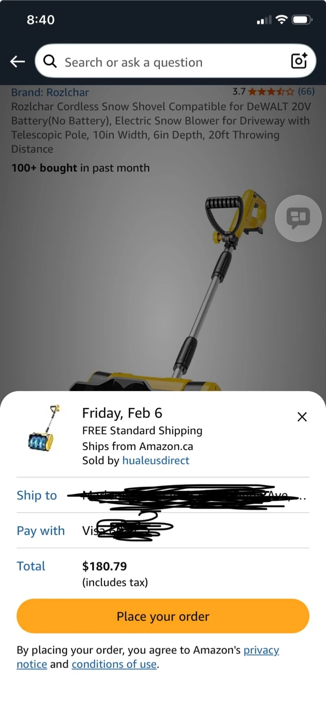 Rozlchar Cordless Snow Shovel Compatible for DeWALT 20V Battery(No Battery), Electric Snow Blower for Driveway with Telescopic Pole, 10in Width, 6in Depth, 20ft Throwing Distance