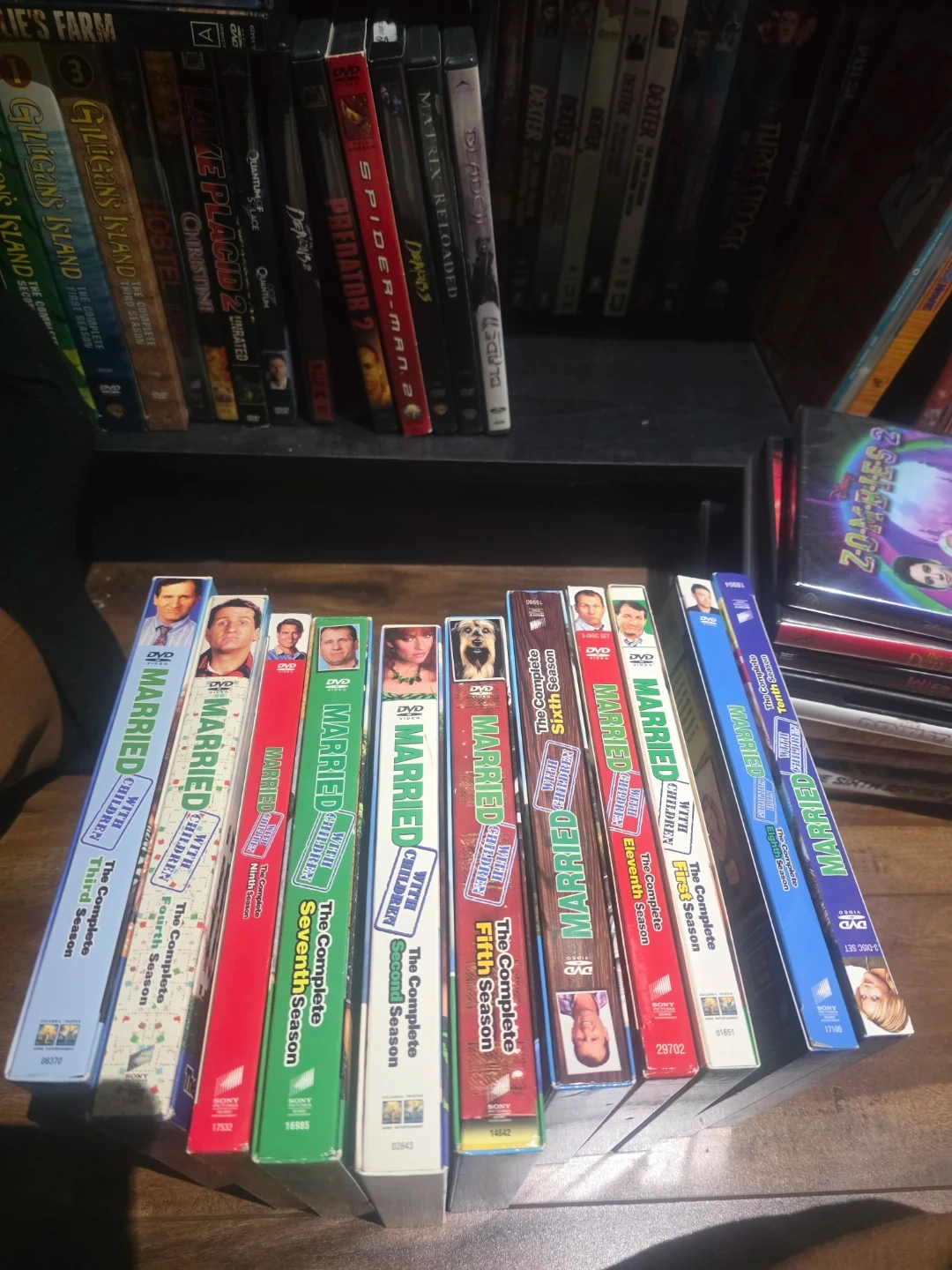 This is a collection of Married With Children DVD sets. It includes seasons second, third, fourth, fifth, sixth, seventh, eighth, and eleventh. These are complete season sets for the TV show.