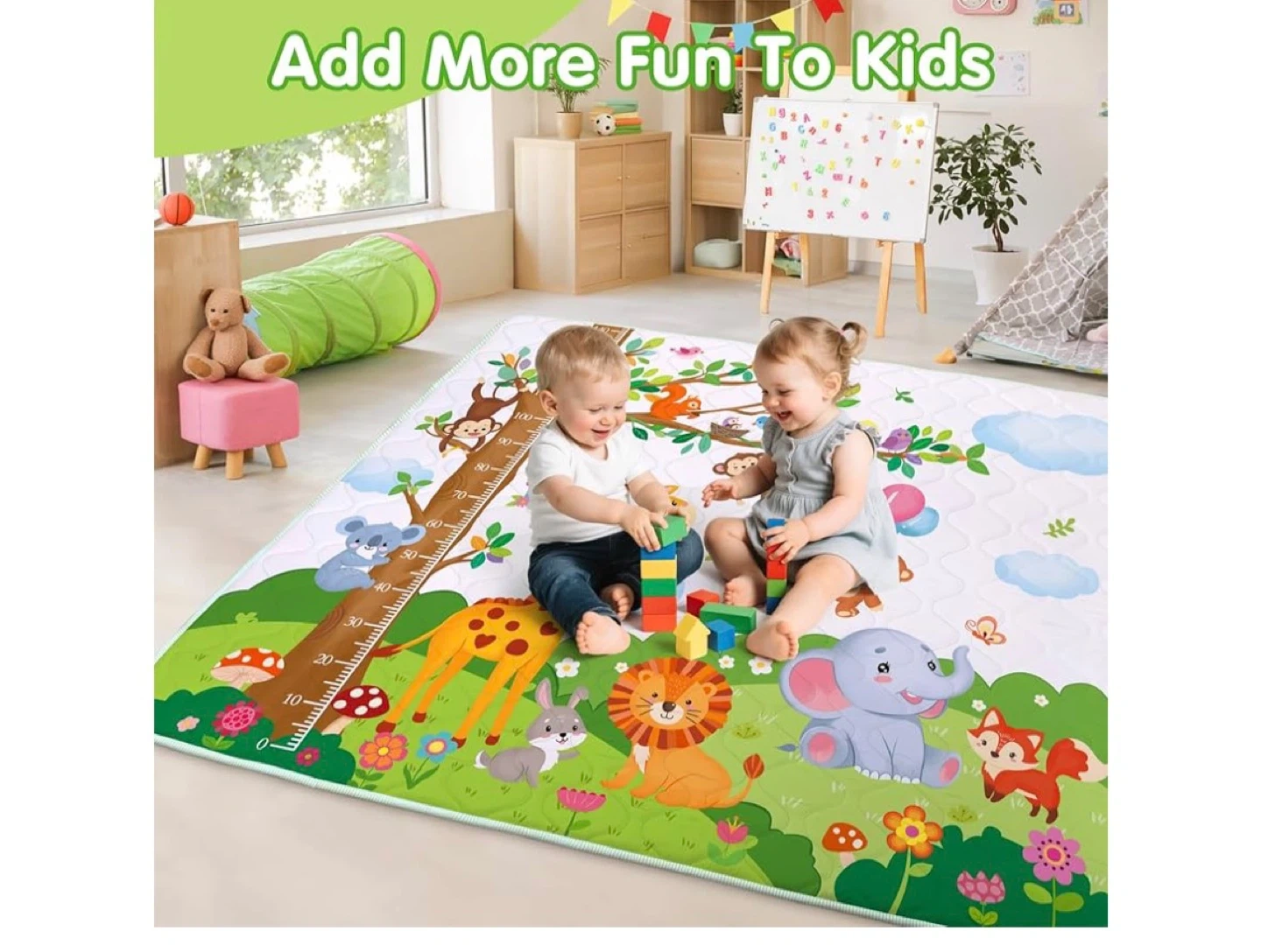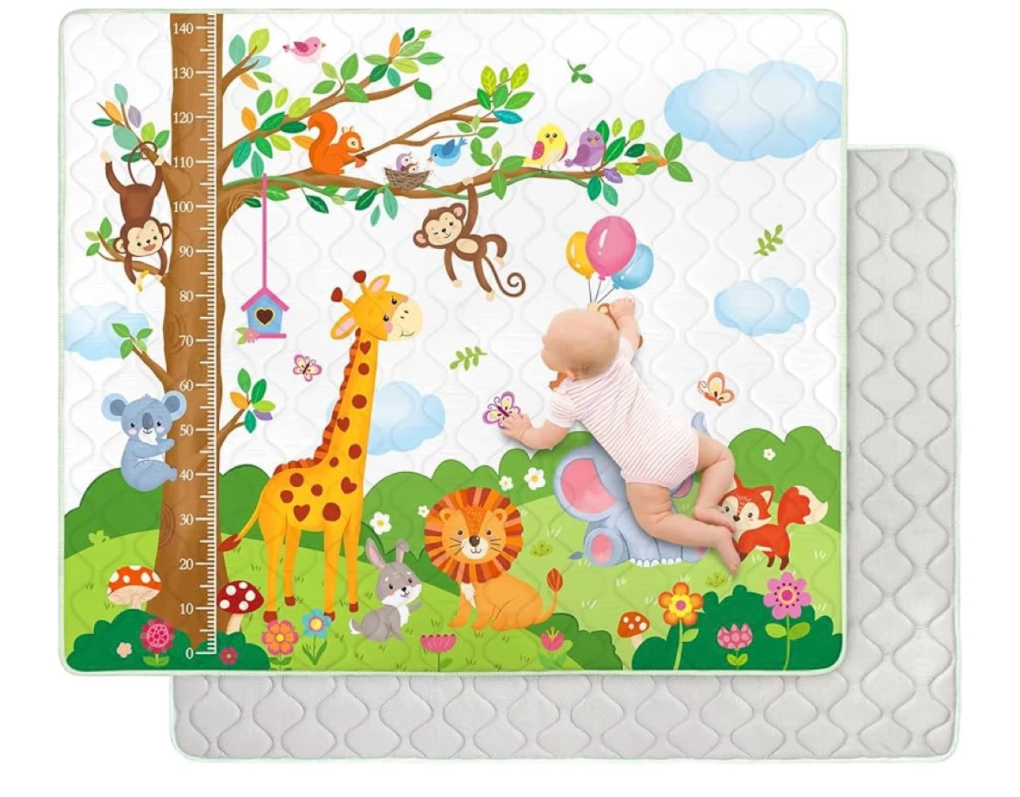 Kids Play Mat with Height Chart - Jungle Animals