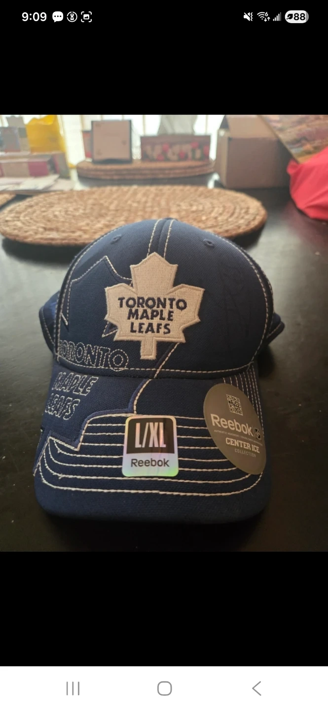 This is a Toronto Maple Leafs baseball cap. It's a Reebok brand cap with "63" embroidered on the side. The size is L/XL.