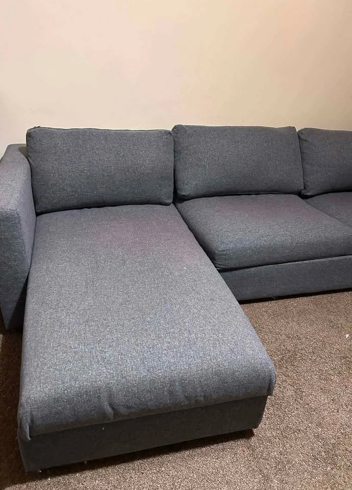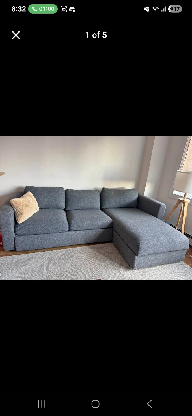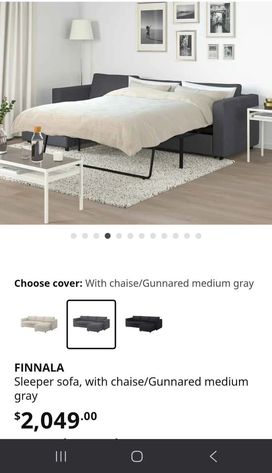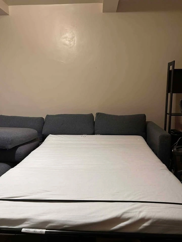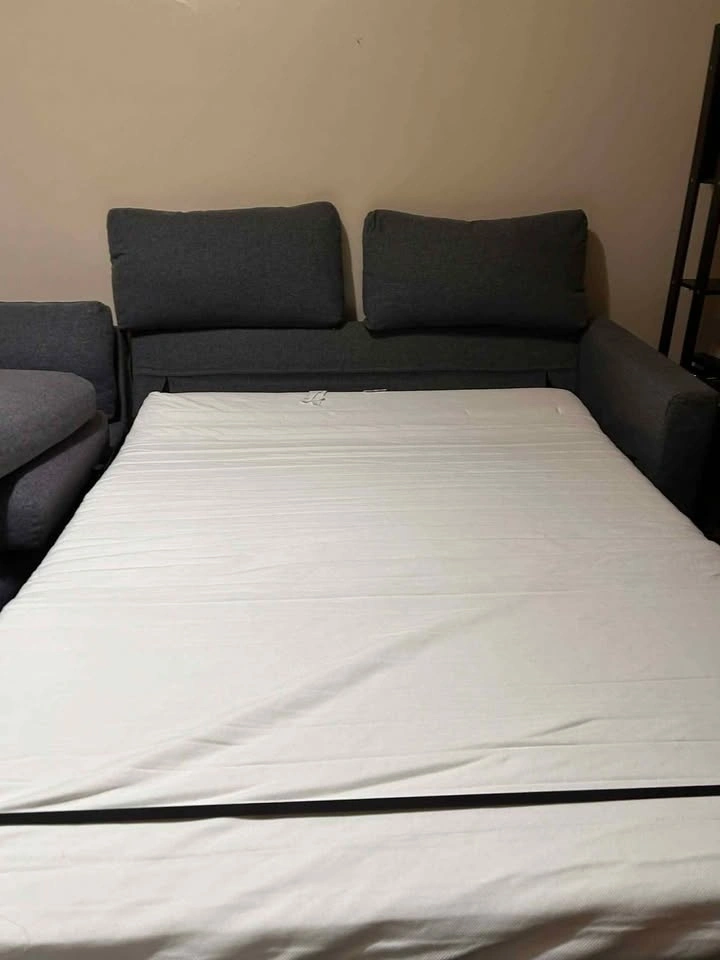 Sleeper sectional sofa with chaise in Gunnared medium gray fabric. Clean and in good condition. Comfortable for everyday seating and very practical for apartments or guest use. Features a pull-out sleeper bed for overnight guests, a reversible chaise that can be placed on either side, and built-in storage under the chaise for blankets or pillows. The modular design offers sturdy, supportive seating with a clean modern look. Removable fabric covers make it easy to maintain and clean. Selling because I'm moving. Mattress and cushions included. Pickup only. Heavy item – please bring help. Cash or Zelle accepted. Smoke-free / pet-free home.