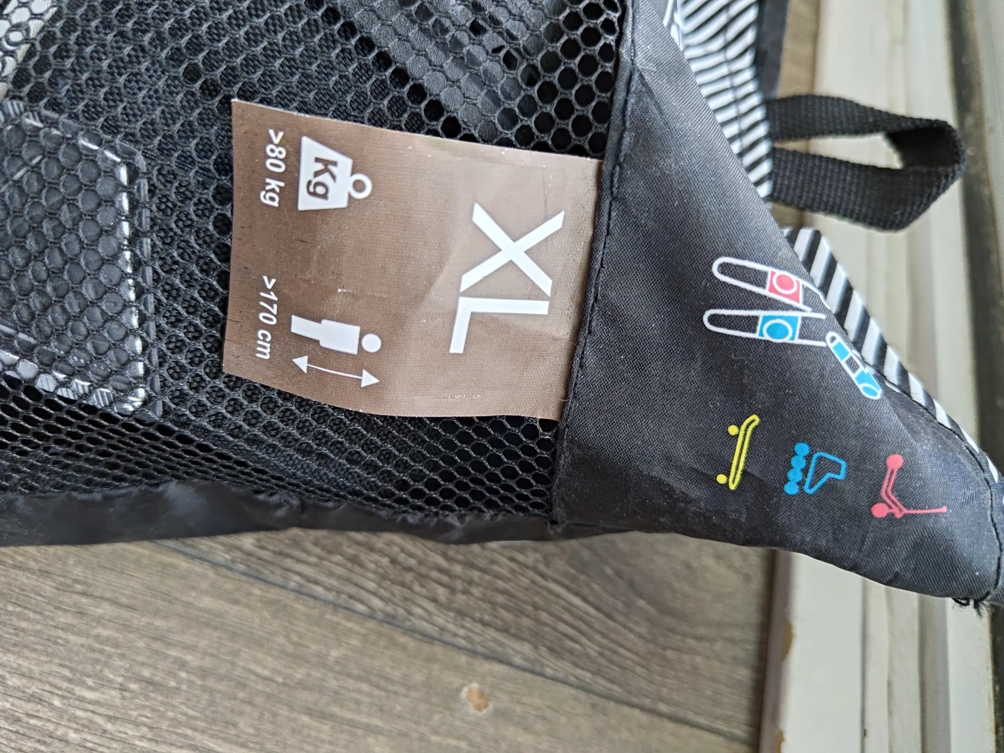 This set includes knee pads, elbow pads, and wrist guards in XL size. Designed for protection for users over 80 kg and 170 cm tall. Comes in a handy mesh bag.