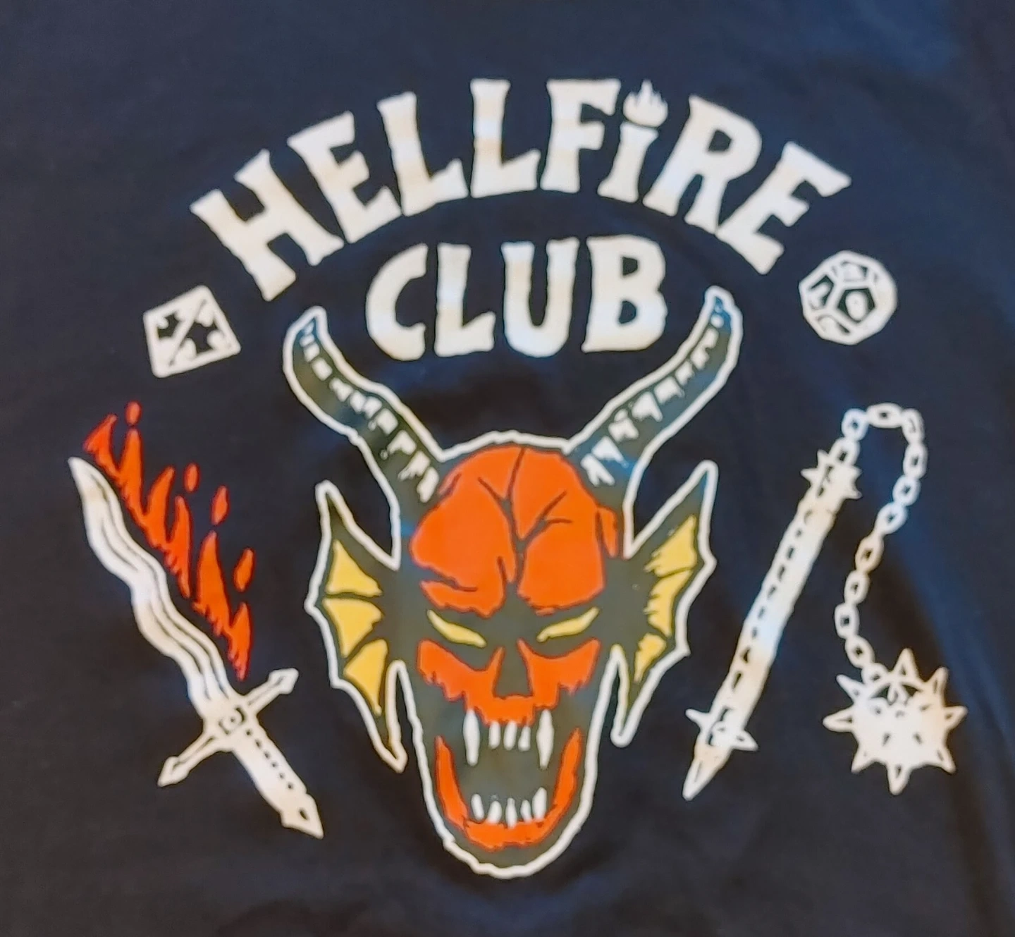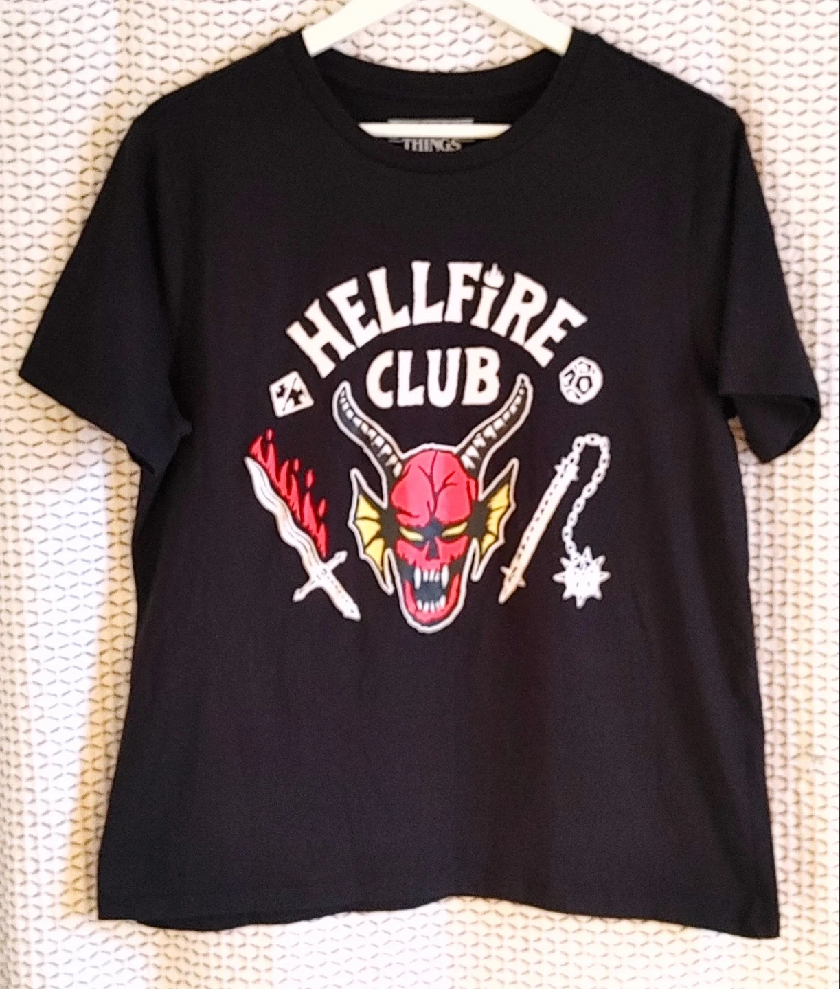 Mens black size medium Stranger Things Hellfire Club t shirt. Excellent condition. Graphic like new. No rips, stains or fraying. Smoke free home pick up Mt Brydges cash only.