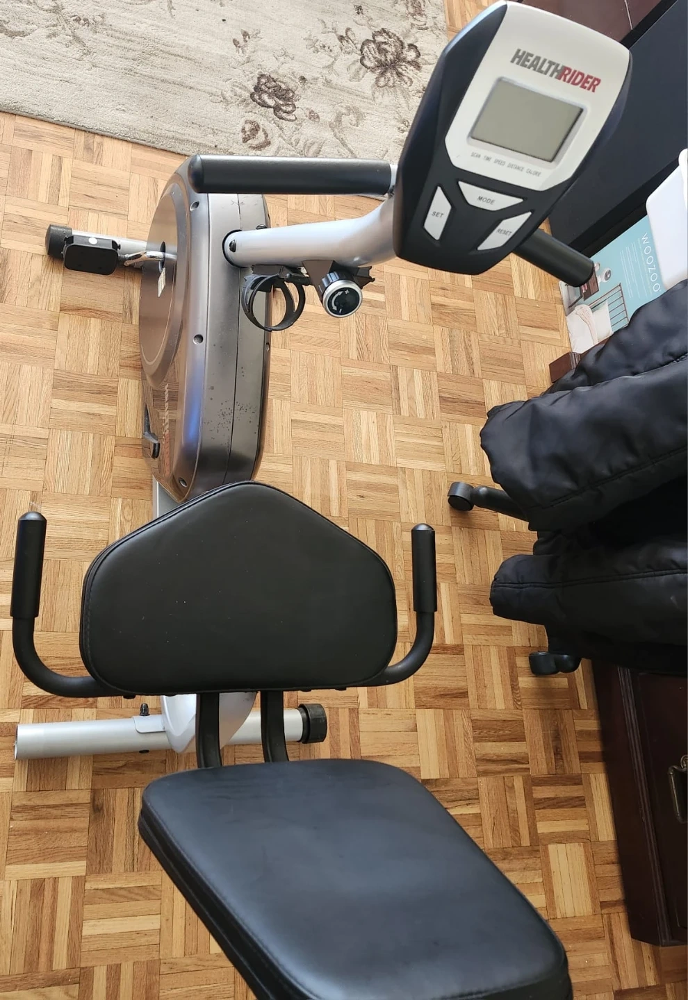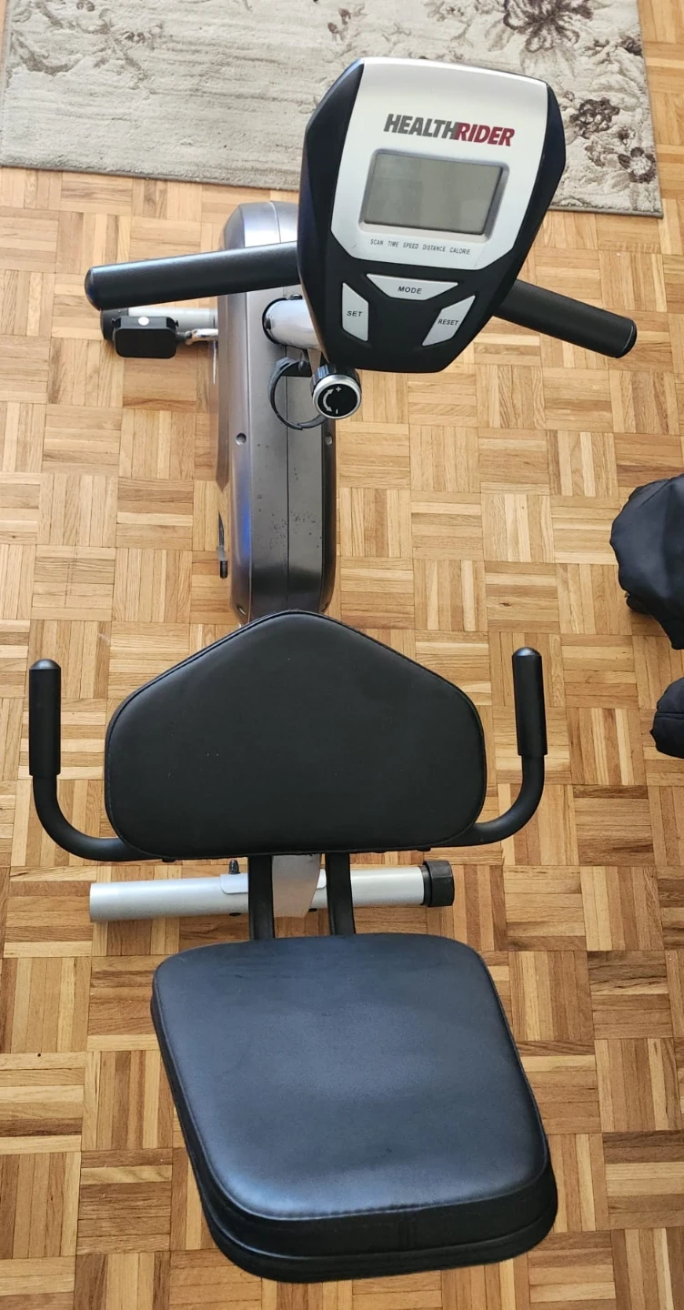 This Healthrider recumbent exercise bike is great for a home workout. It features an adjustable seat and digital display for tracking your progress. Left unused for a year after it was bought selling because it's not used enough