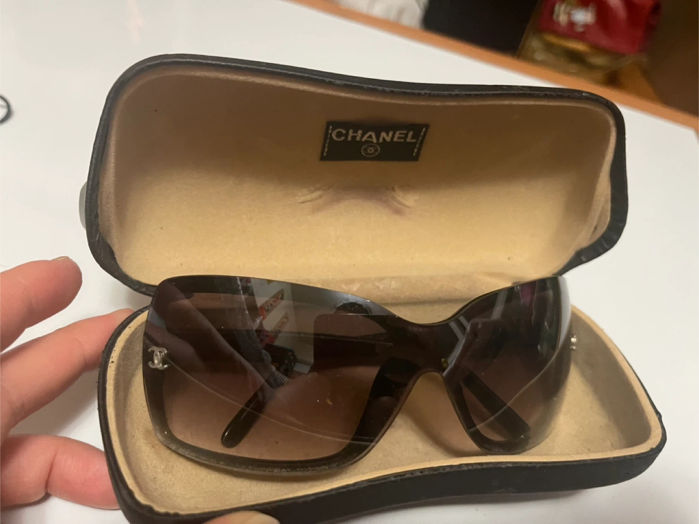 Authentic Chanel sunglasses in a dark brown, gradient lens style. Includes the original Chanel hard case for protection.