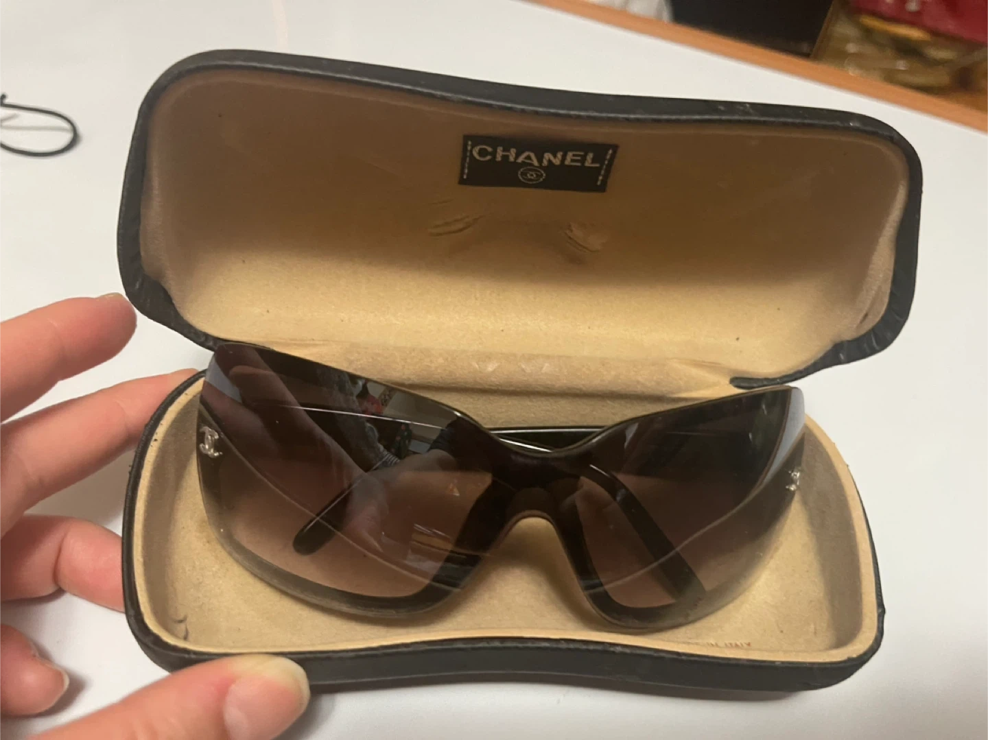 Authentic Chanel sunglasses in a dark brown, gradient lens style. Includes the original Chanel hard case for protection.