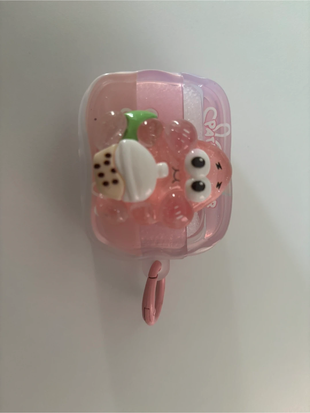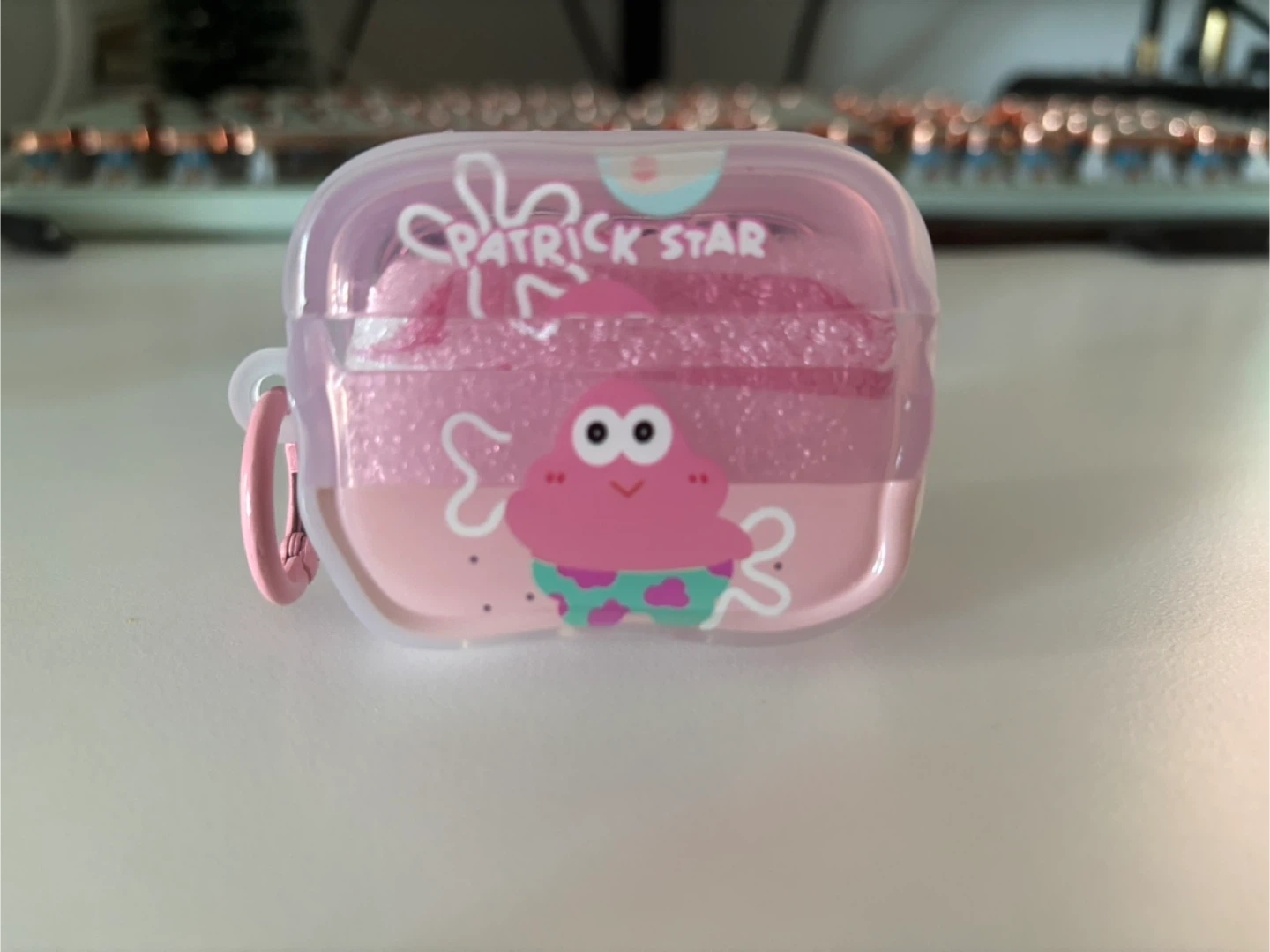 This is a cute pink glitter AirPod Pro3 case featuring Patrick Star. It's designed to protect your earbuds and add some fun style. Comes with a convenient keychain loop for easy carrying!