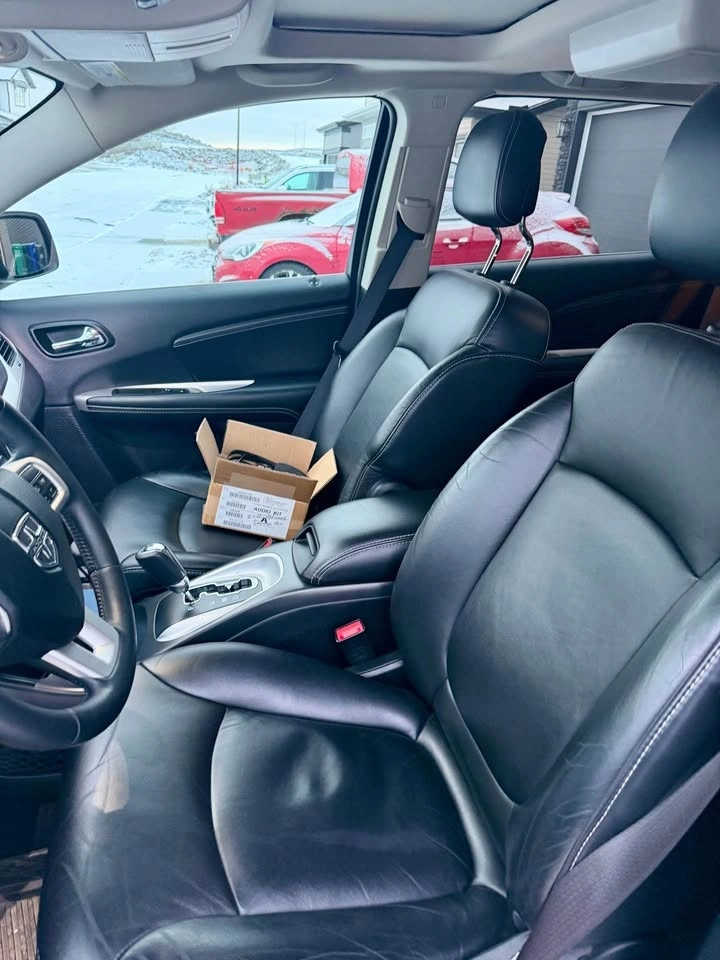 Dodge Journey R/T AWD, fully loaded with extremely low kilometers. Excellent condition. Recent oil change, windshield replacement, new floor mats, and transmission oil flush and change. Comes with 19” rims on new tires. Features remote start and a DVD player with two new headphones. The vehicle has a rebuild title, but this does not affect its excellent driving and handling performance with the AWD system.