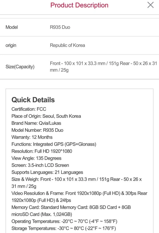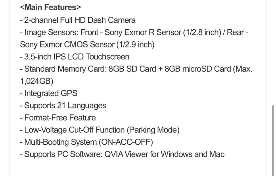 Used for less than an hour for a demo. Excellent device made in Korea. Can send alerts to phone or be downloaded from memory card. Specs in pictures. Comes with hardwire kit that won’t drain vehicle battery; just need a fuse tap to install. Paid $450, my loss your gain.