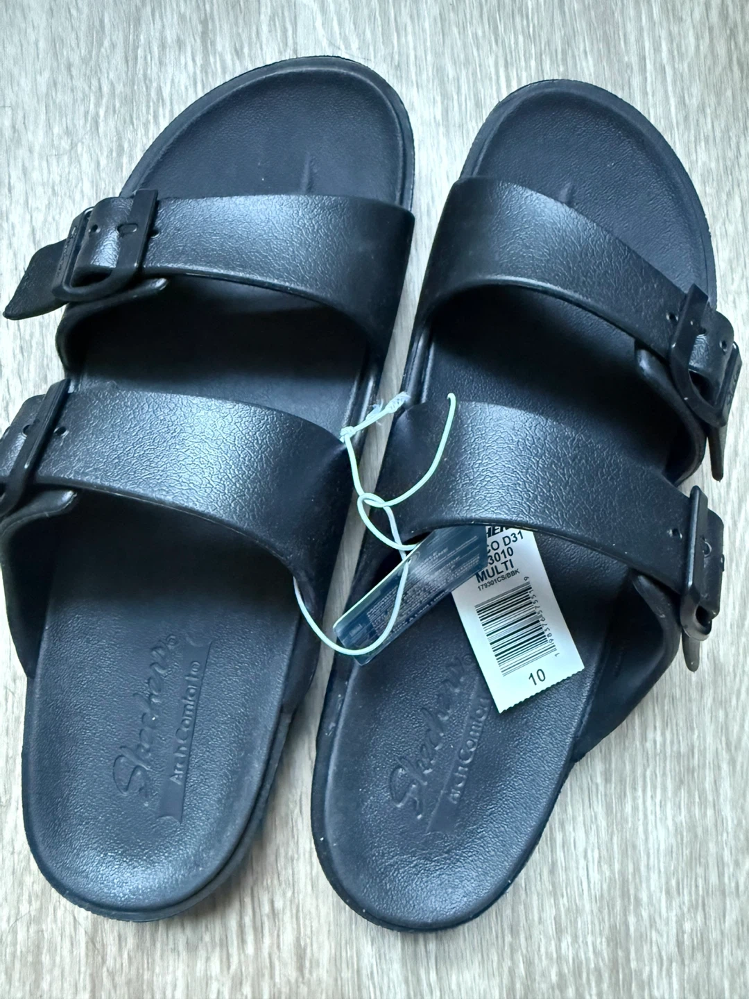 These Skechers sandals are black and feature dual adjustable straps. These are never used, and new with tags.