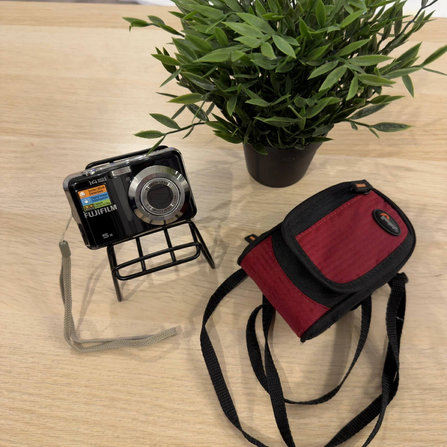 This Fujifilm FinePix AX300 is a black digital camera with 14 megapixels. It features Smile/Blink Detection and Digital Image Stabilization. It can capture HD movies in 720p and has a 5x optical zoom.