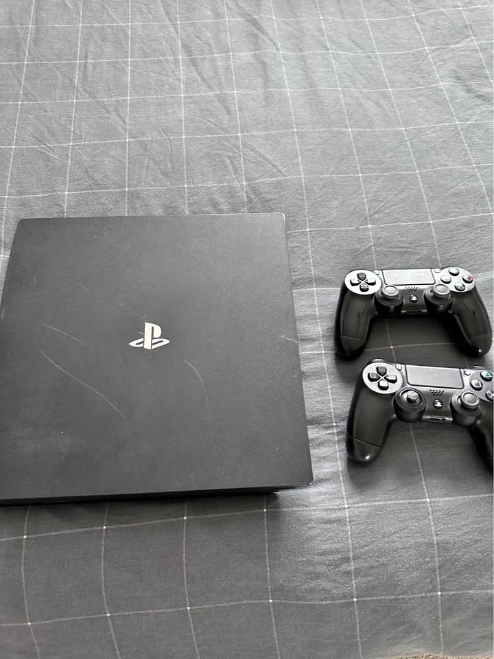 Ps4 Pro, comes with 2 controllers, all cables and controller stand. Console has no issues, controllers don't have stick drift. $200 OBO (Trades accepted)