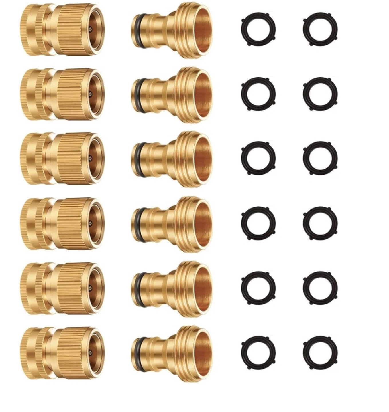 Connect your garden hoses quickly and easily with this 10-piece set of brass quick connectors. They're made from durable brass and feature a threaded design for a secure fit. These connectors help make attaching and detaching hoses a breeze!