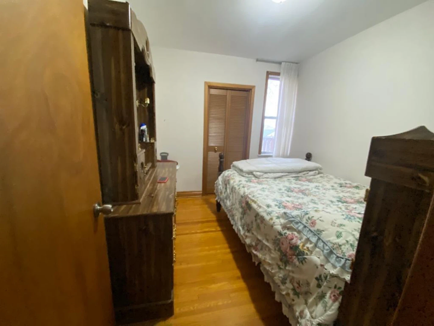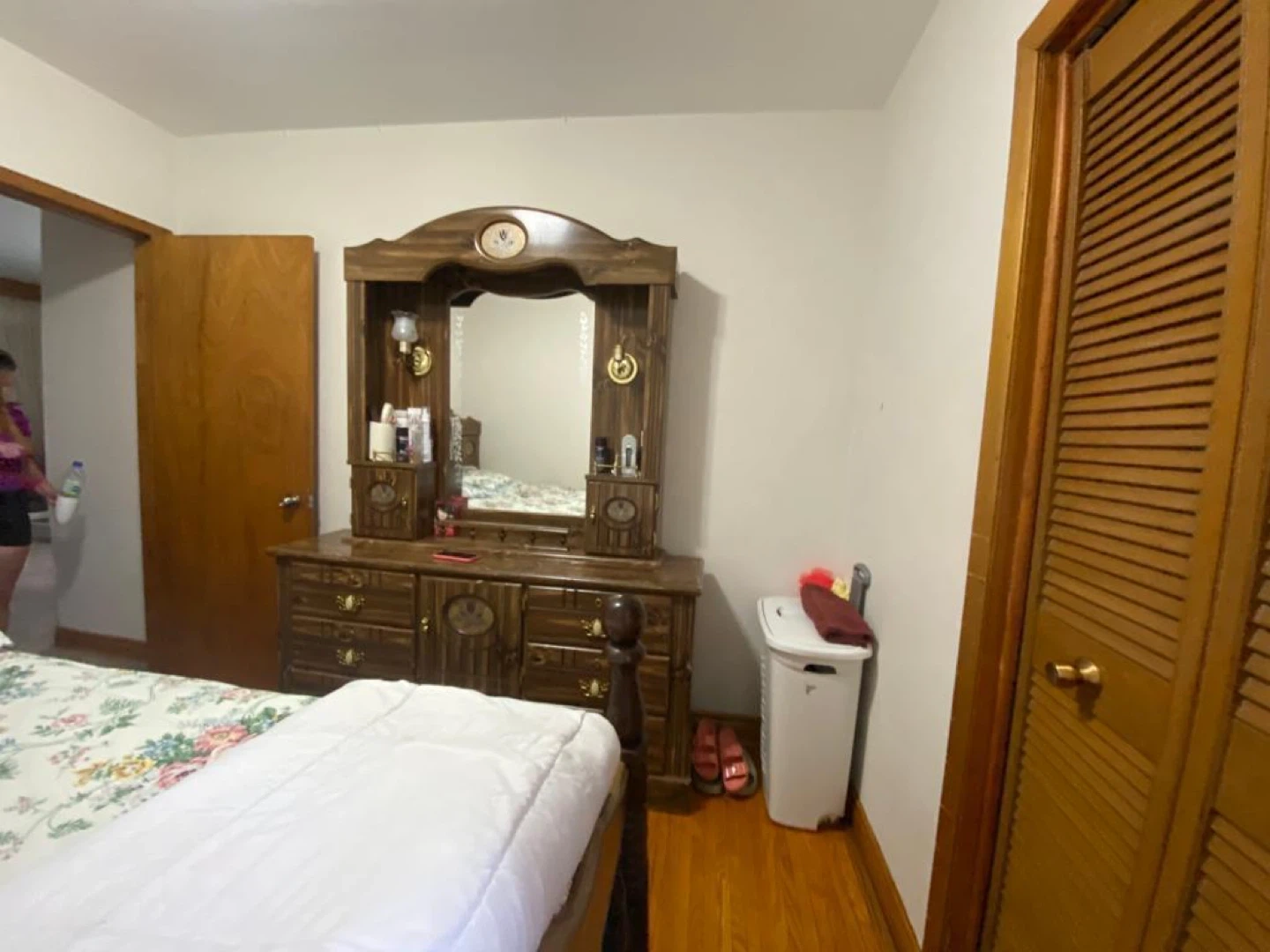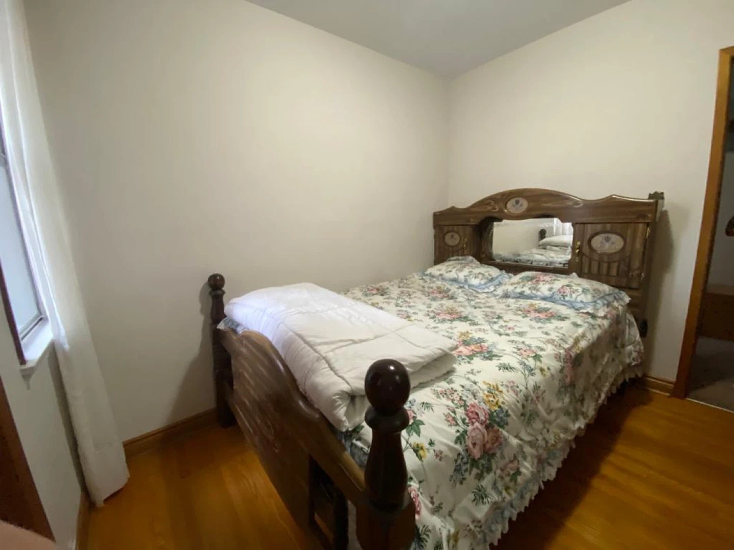 Solid wood bedroom set featuring a queen-size bed frame and a dresser with a mirror. The headboard includes storage and decorative elements. This set brings a classic look to any bedroom. Dressers drawers provide ample storage space. Area: Oackwood and Roger’s ( Keele and Roger’s)