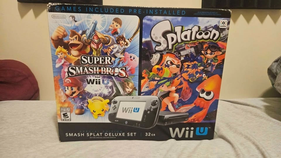 Comes pre-installed with Splatoon & Super Smash Bros on the system. Console, gamepad, adapter, stand, and charger are included.