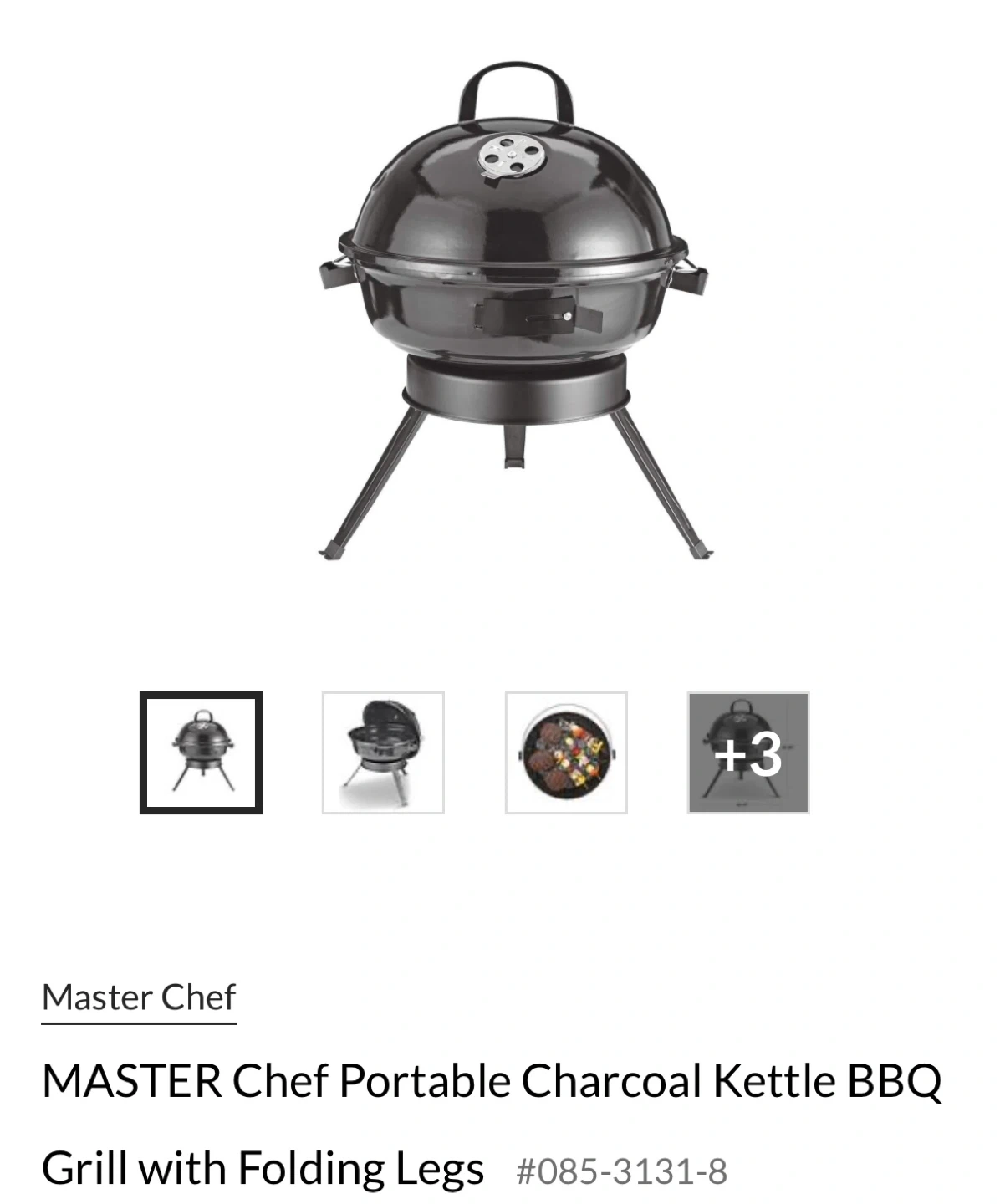 Master Chef Portable Charcoal Kettle BBQ Grill + Charcoal