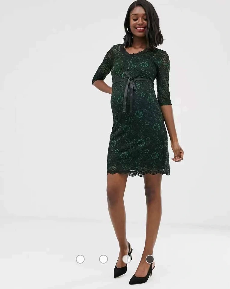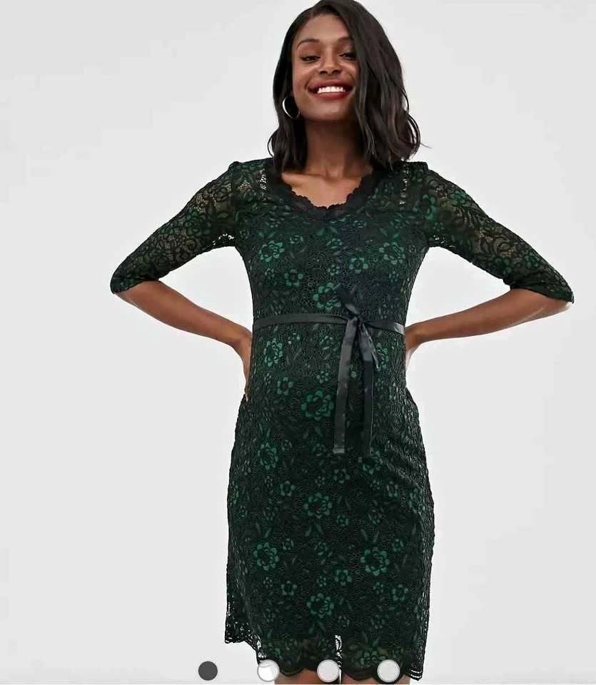 BNWT Mamalicious Maternity Lace Bodycon Dress Emerald Green M