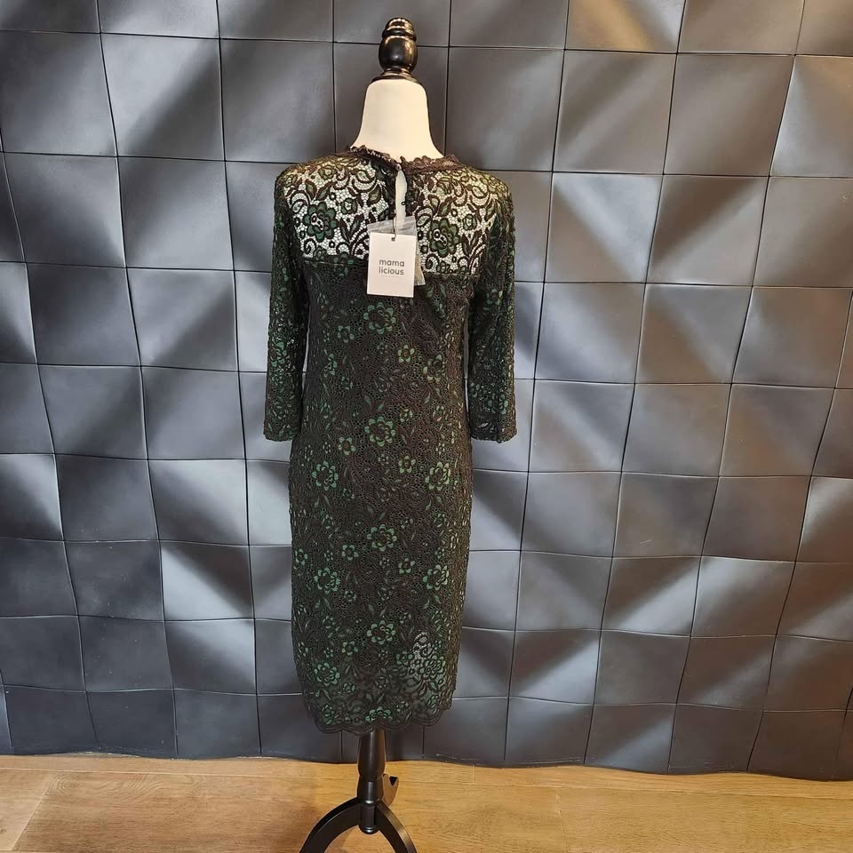 BNWT Mamalicious Maternity Lace Bodycon Dress Emerald Green M