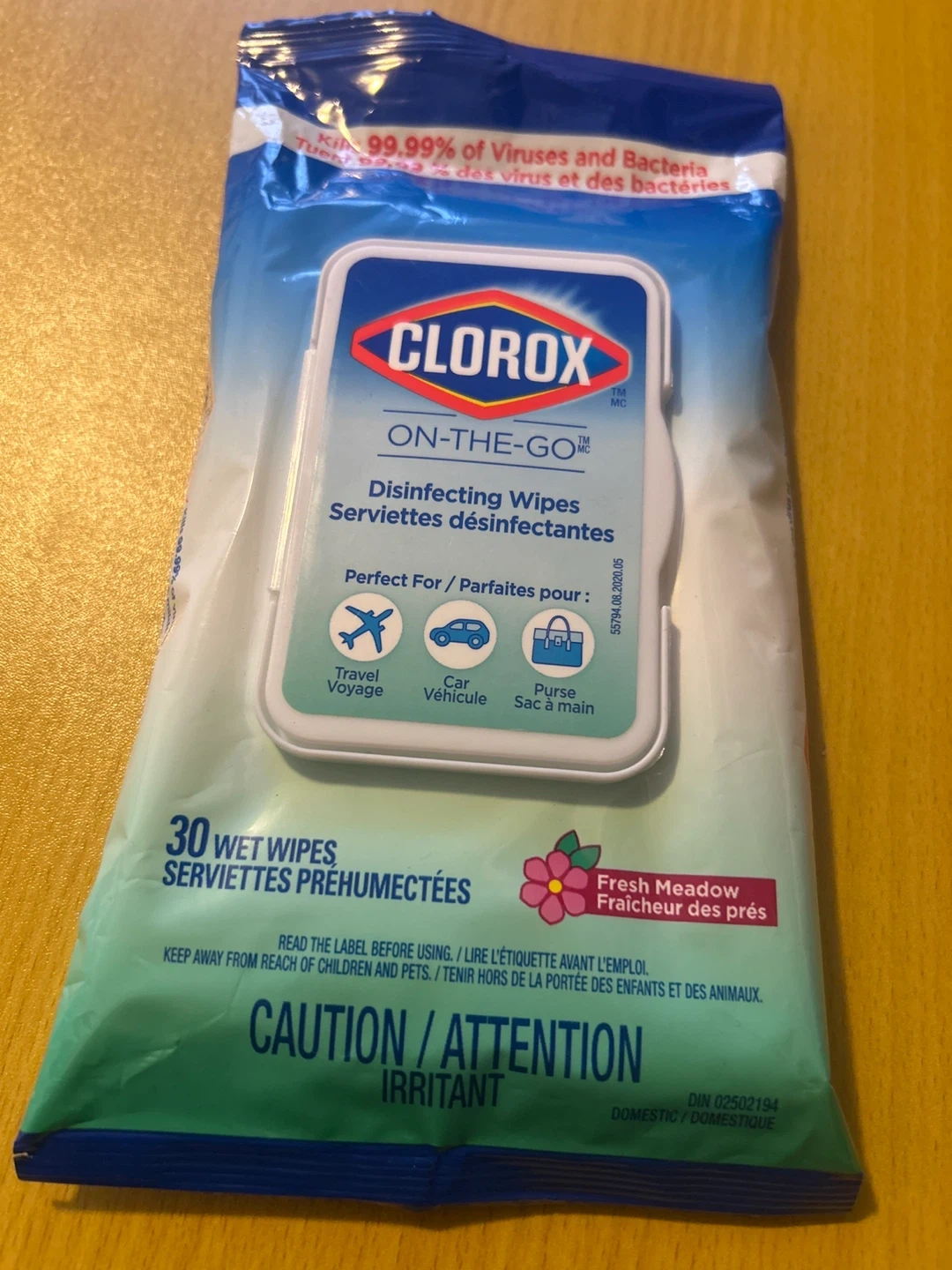Keep surfaces clean with 30 Clorox disinfecting wipes. They come in a Fresh Meadow scent and are perfect for travel, your car, or your purse. These wipes kill 99.99% of viruses and bacteria.