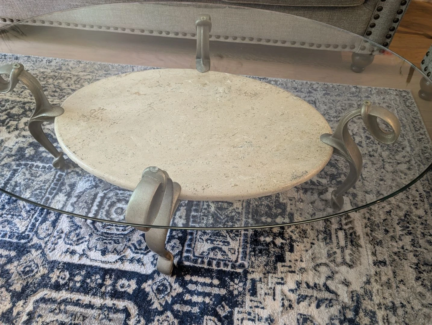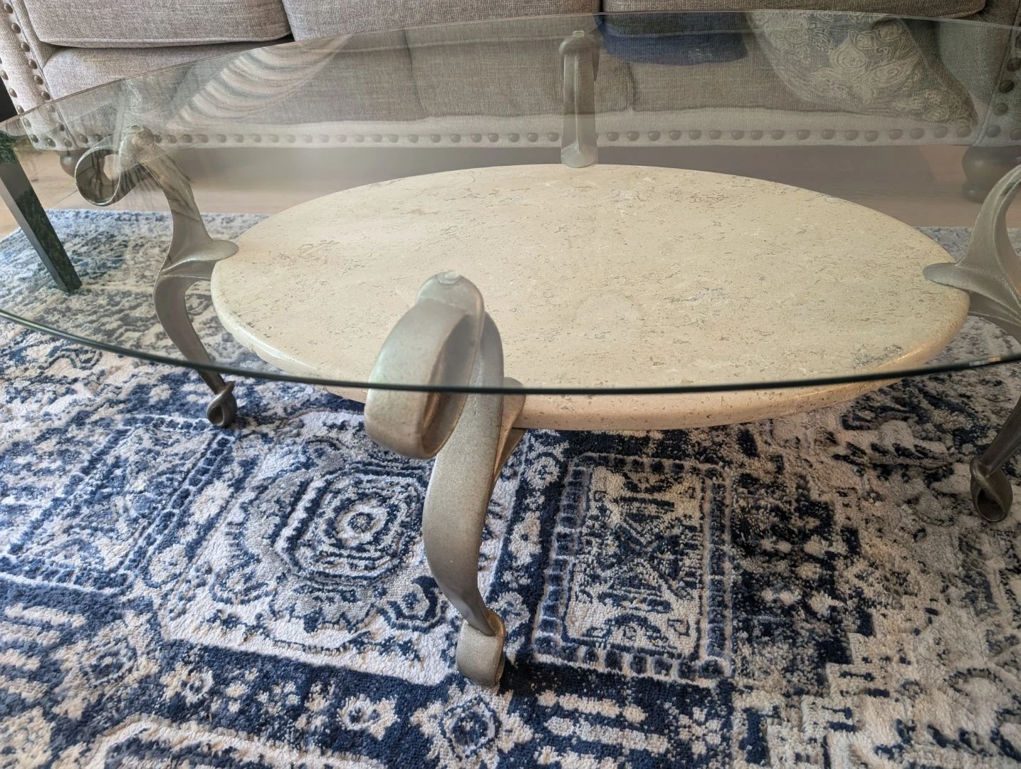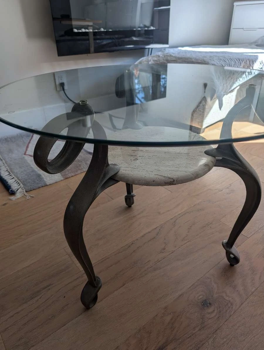 2 Round Glass Top Coffee Table with Marble Insert