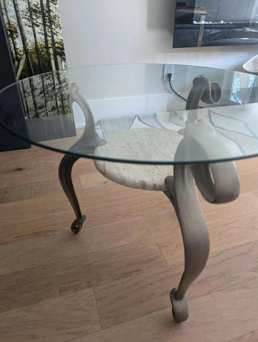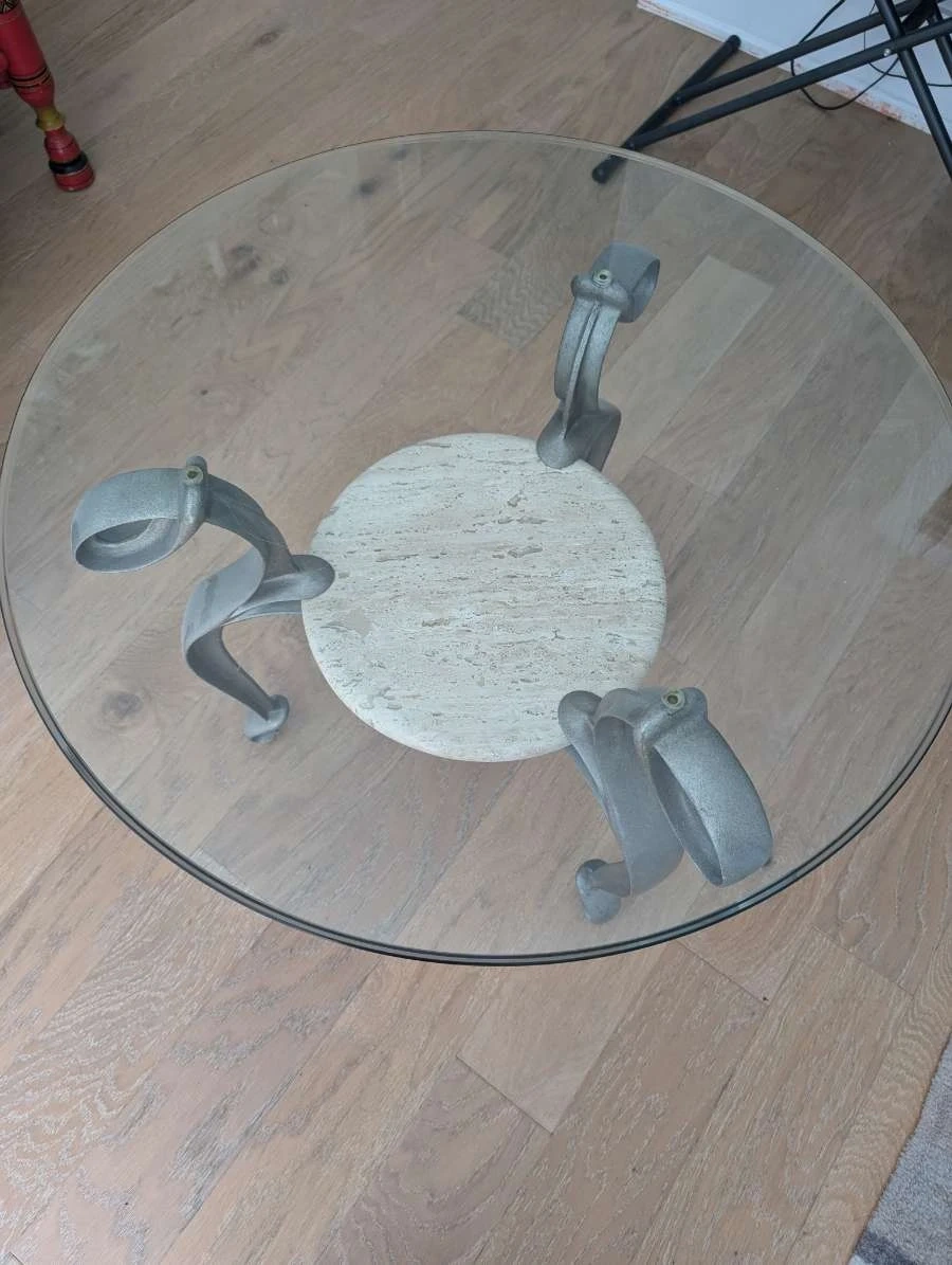 2 Round Glass Top Coffee Table with Marble Insert