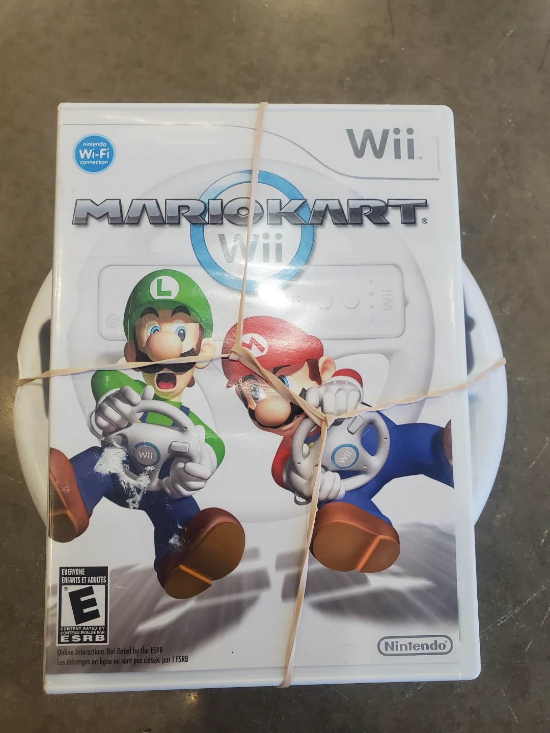Nintendo Wii Mario Kart Steering Wheel and Game Bundle
