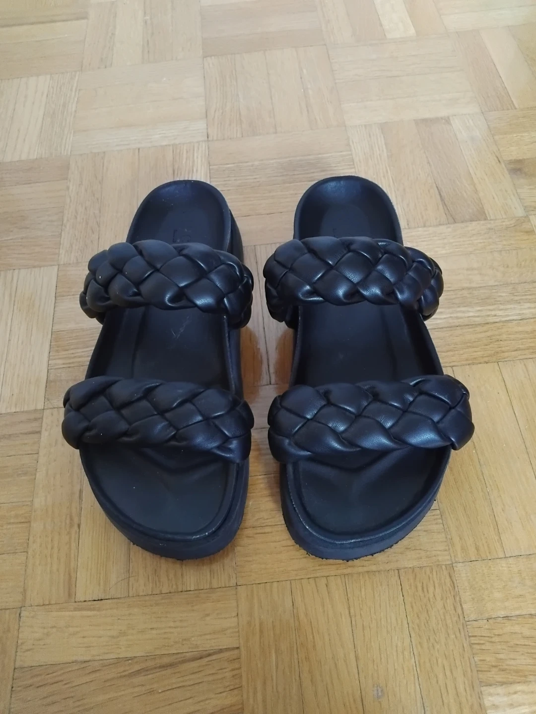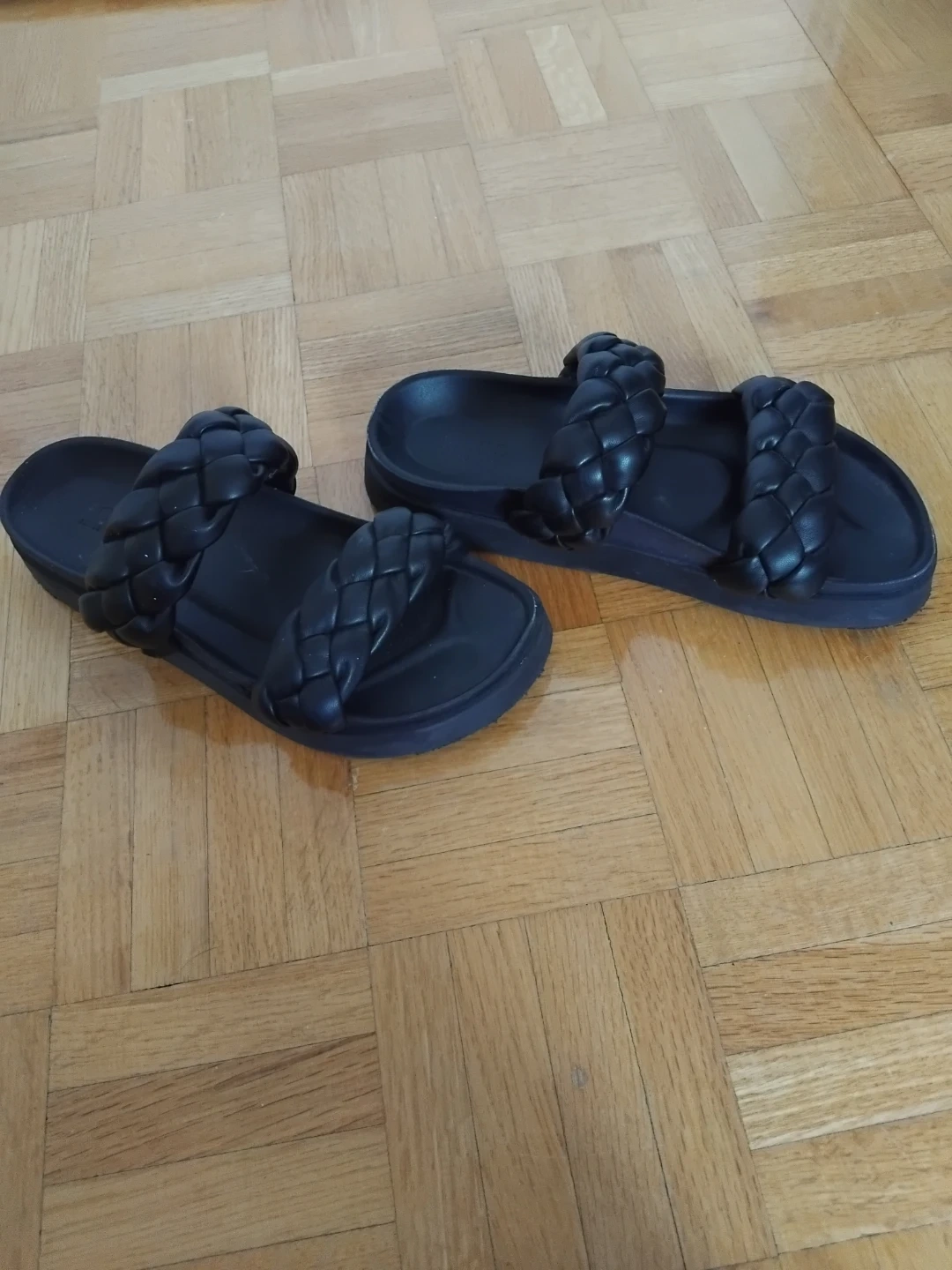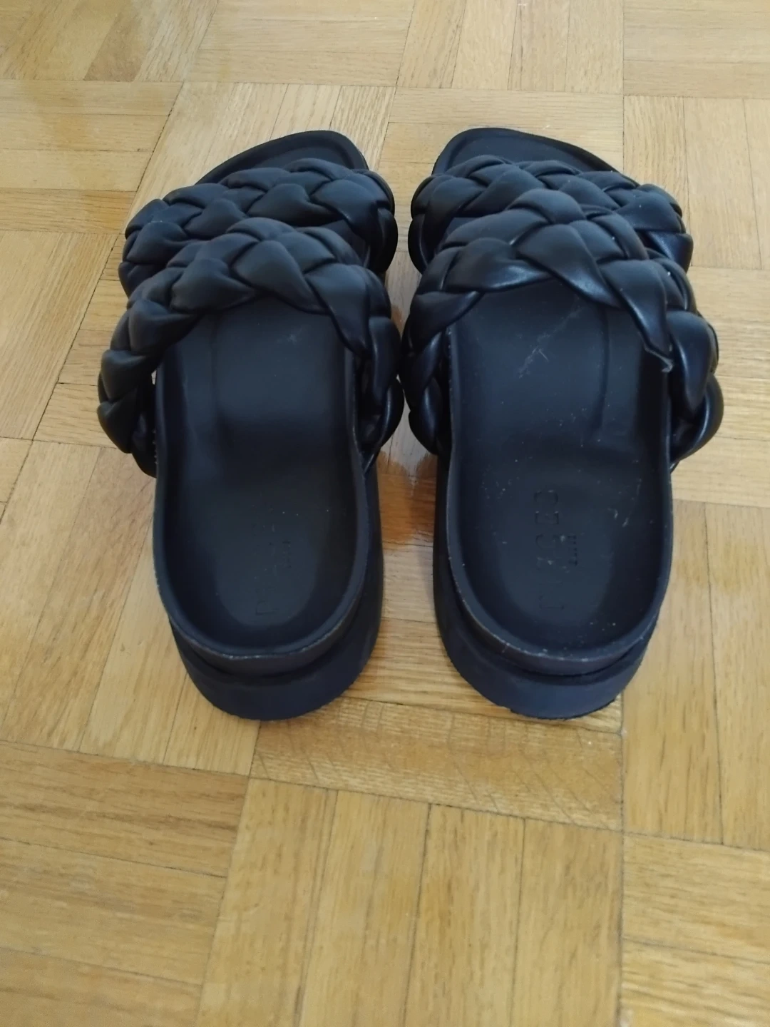 Buy & SellBlack Braided Slide SandalsBlack Braided Slide Sandals$20Black braided slide sandals. These feature a chunky sole and woven straps. They're super comfy and stylish!ConditionLike newSize38WHERE TO MEETWoodbridgeView MapSELLERGildaWoodbridge494 reviews0 chats·0 favorites·3 viewsSEND CHAT TO SELLERHi Gilda! I’m interested in your listing.Hi Gilda! I’m interested in your listing.Get the Karrot app to chatSign In to chat