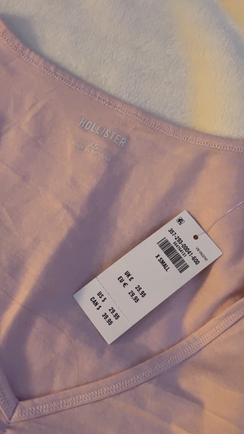 Hollister Pink V-Neck Long Sleeve T-Shirt - XS