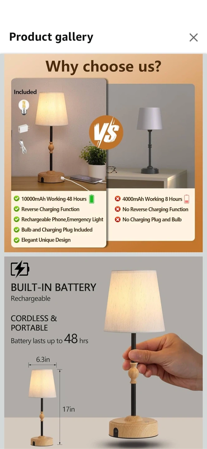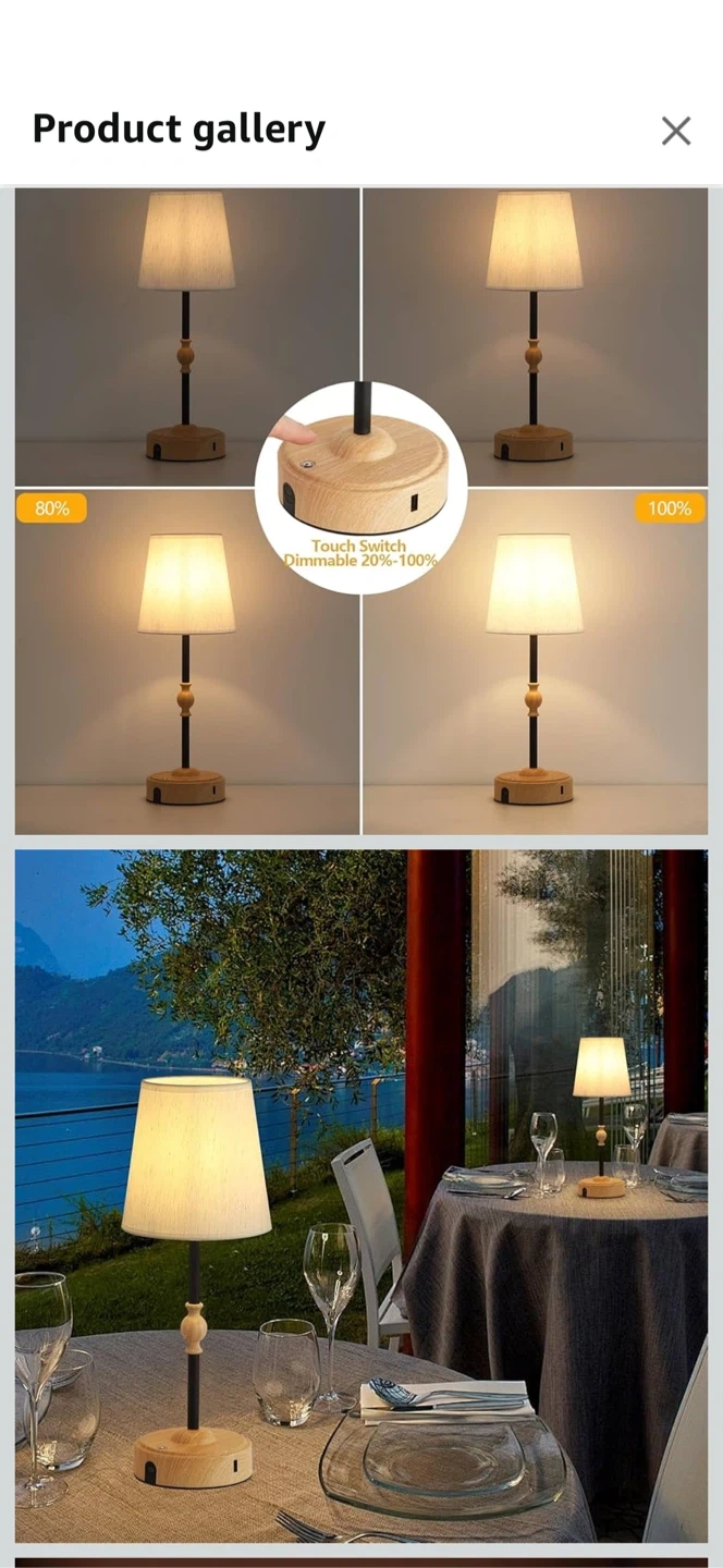 This cordless table lamp offers 48 hours of working time. It's rechargeable and portable, perfect for use anywhere. It has a touch switch with dimmable brightness from 20% to 100%.