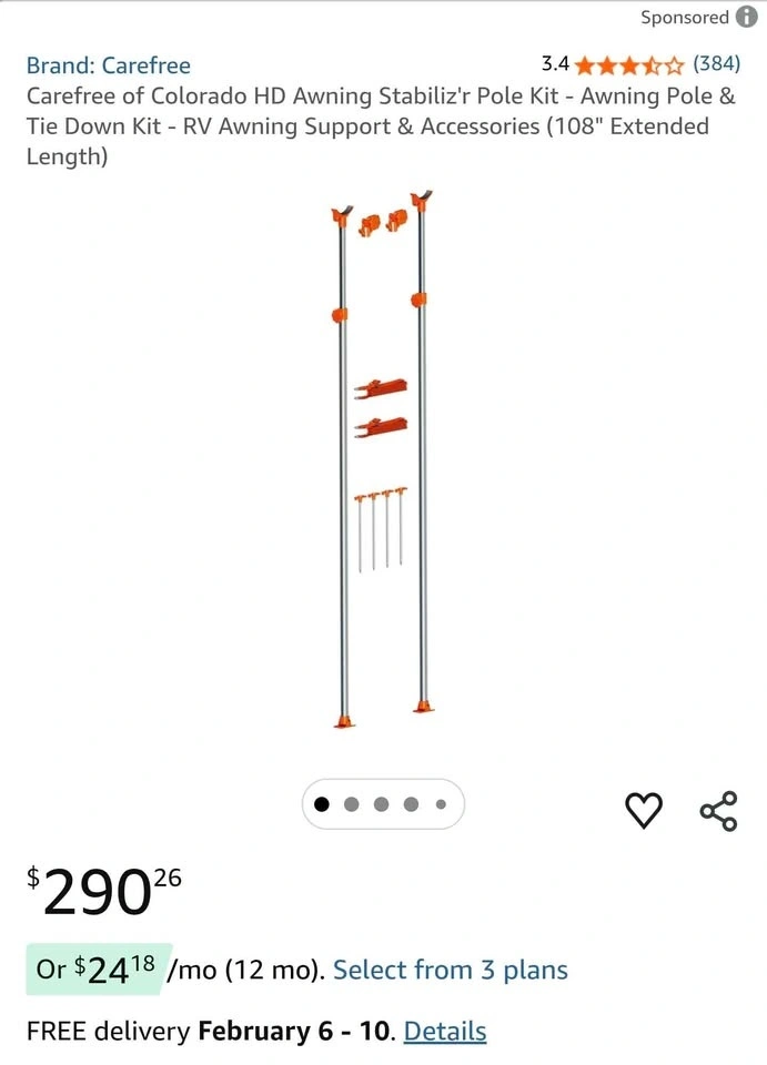 Electric RV Awning Support Poles