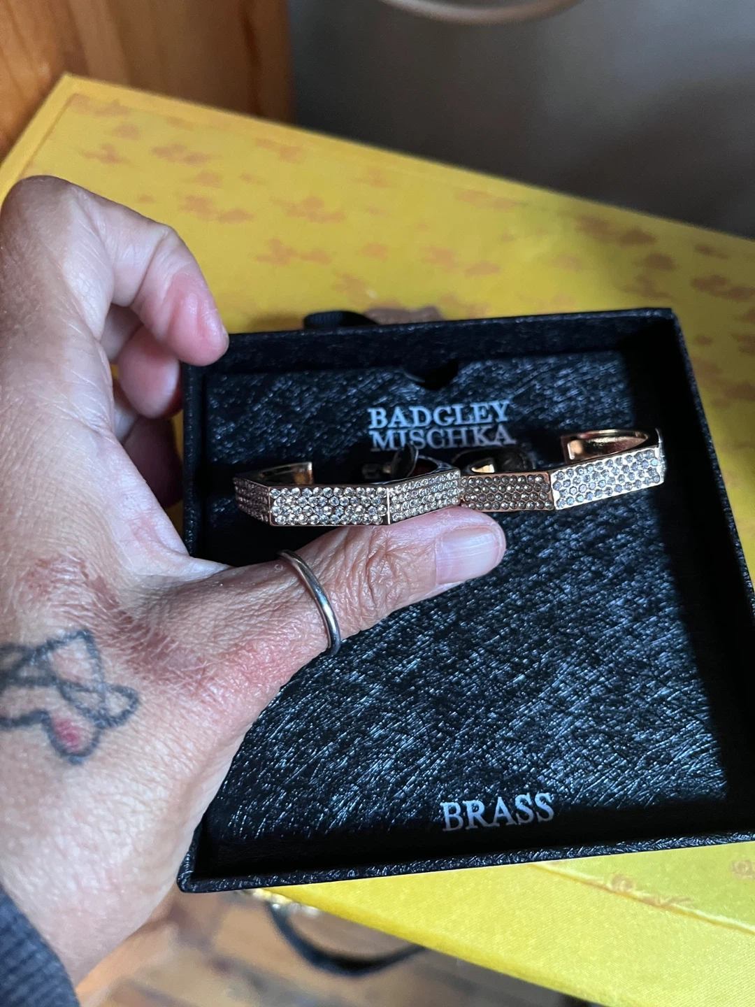 This Badgley Mischka cuff earrings is adorned with sparkling crystals. It's crafted from brass for a durable and elegant finish. A beautiful accessory to elevate any outfit!