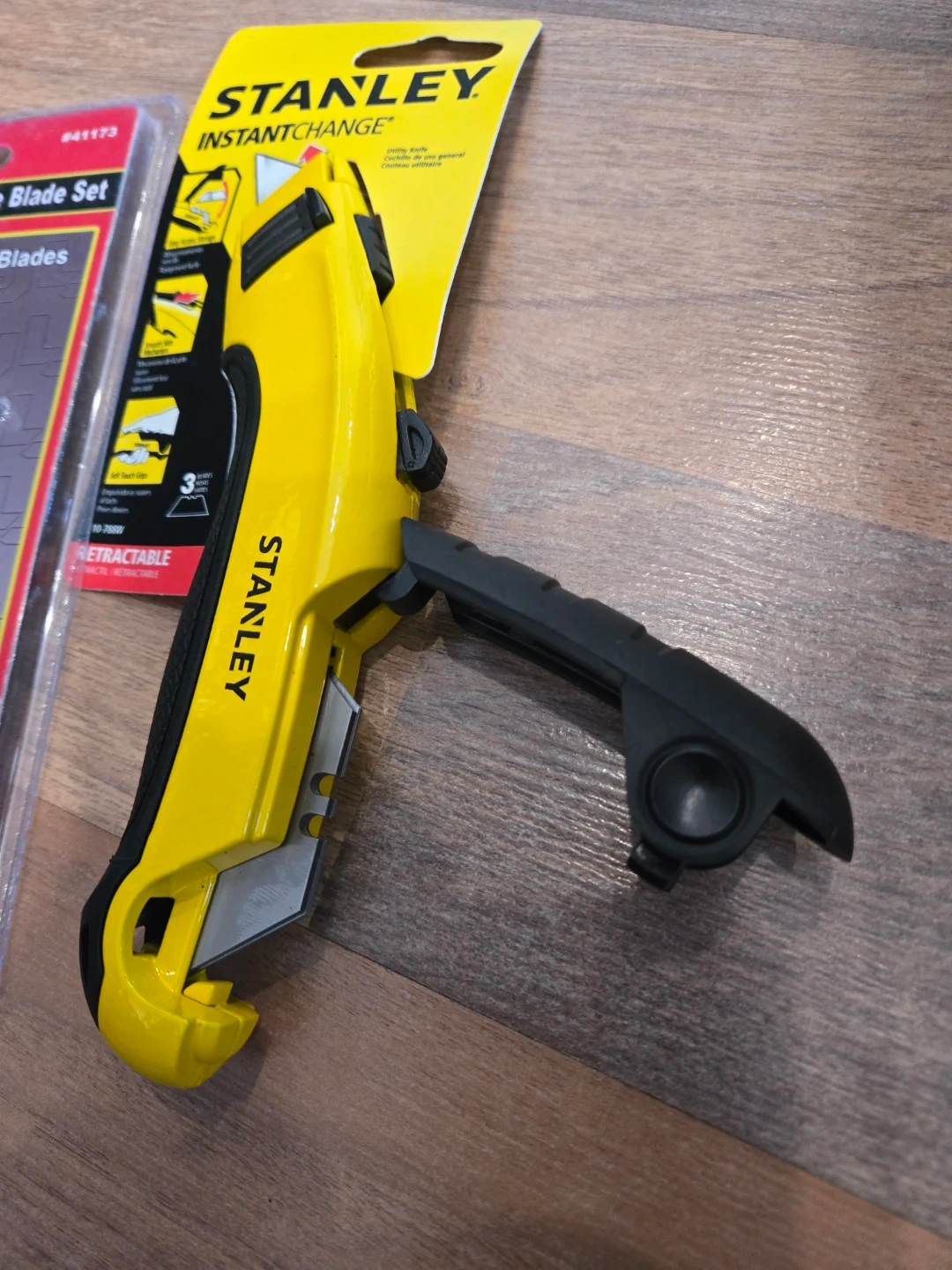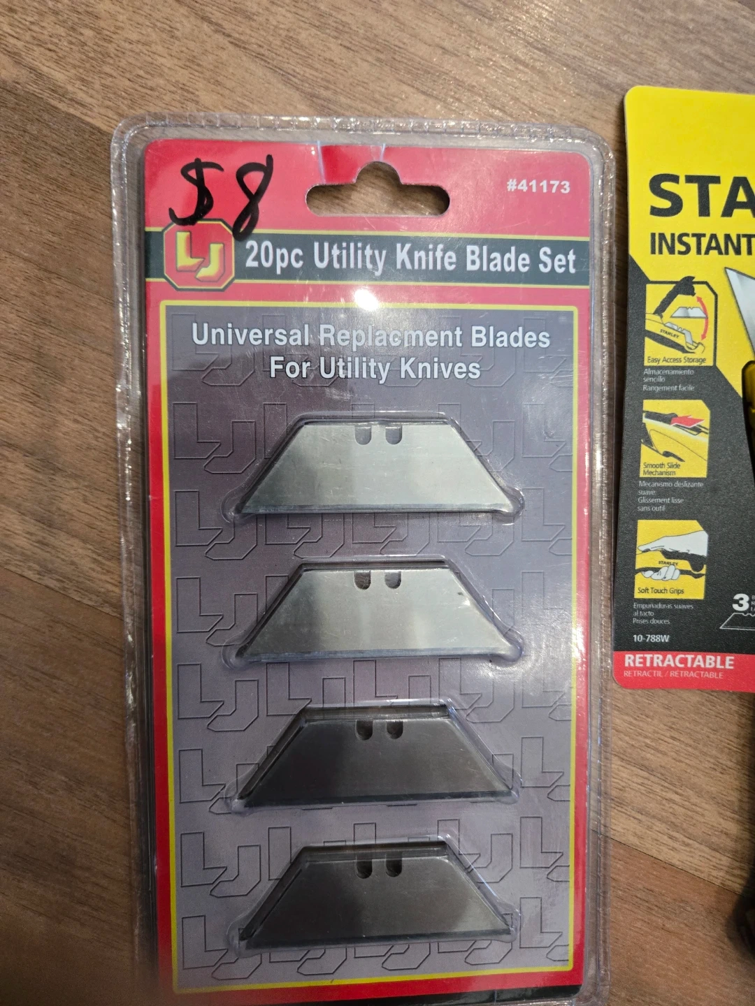 Get this handy Stanley InstantChange utility knife along with a 20-piece universal replacement blade set. The knife features easy access storage, a smooth slide mechanism, and soft touch grips. Blades are universal and suitable for most utility knives. It's great for various cutting tasks around the house or job site!