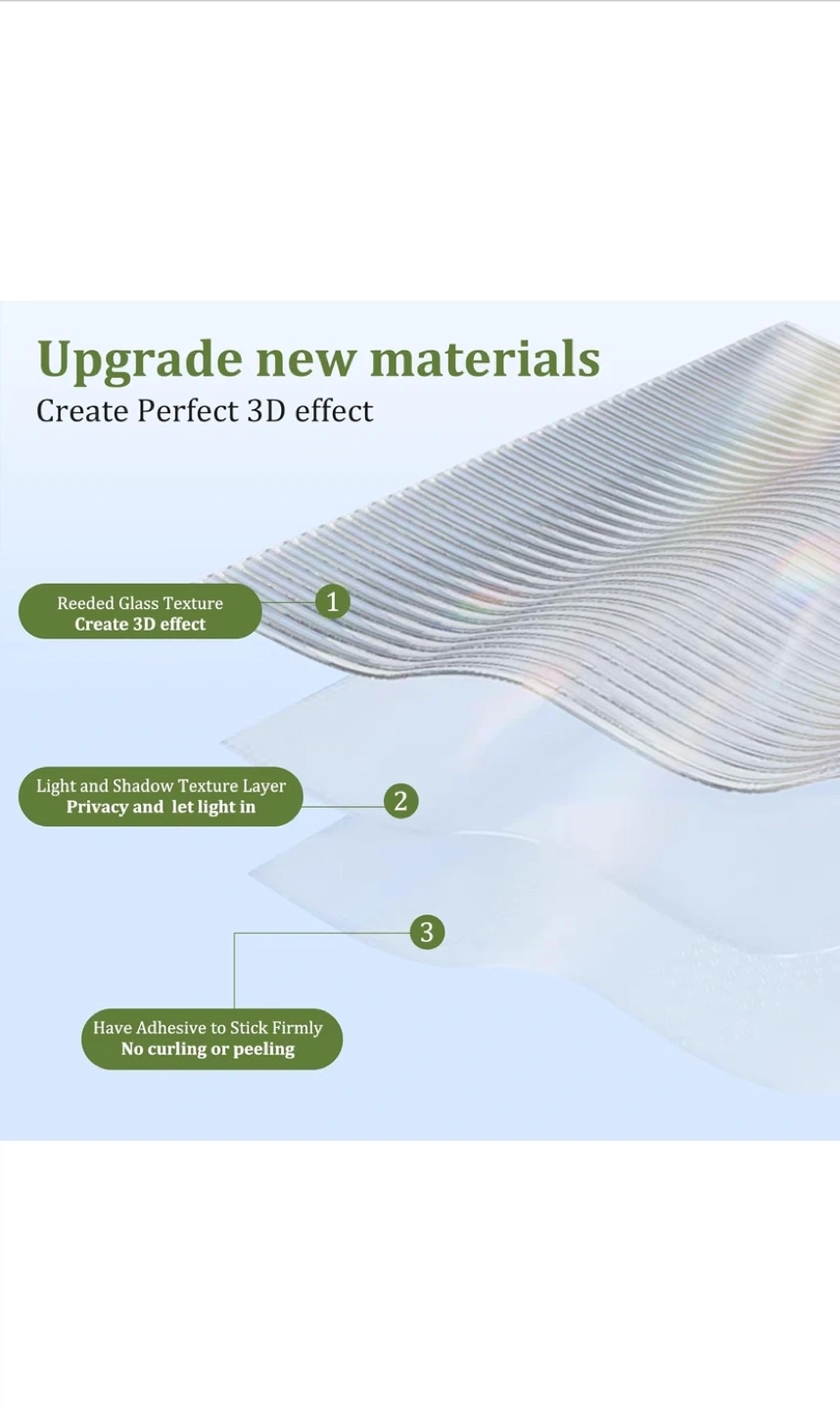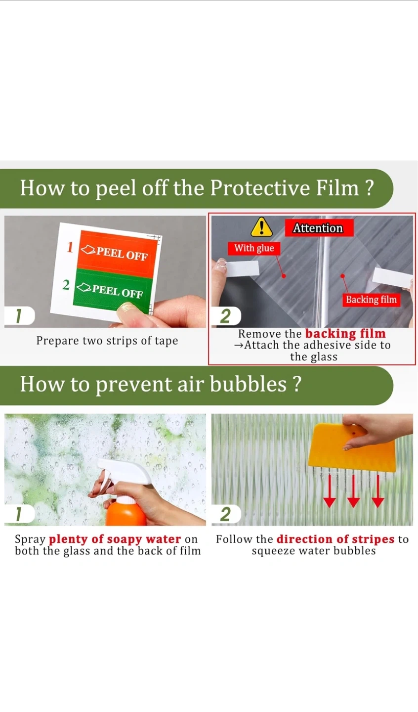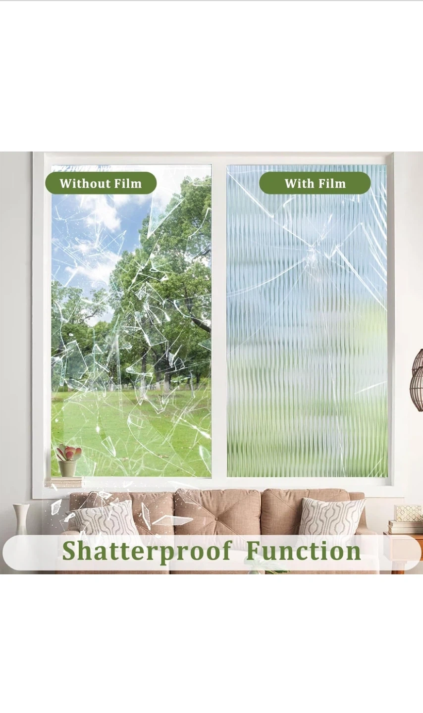 This window film offers a shatterproof function. It's easy to install with water. The film has a ribbed texture pattern.
